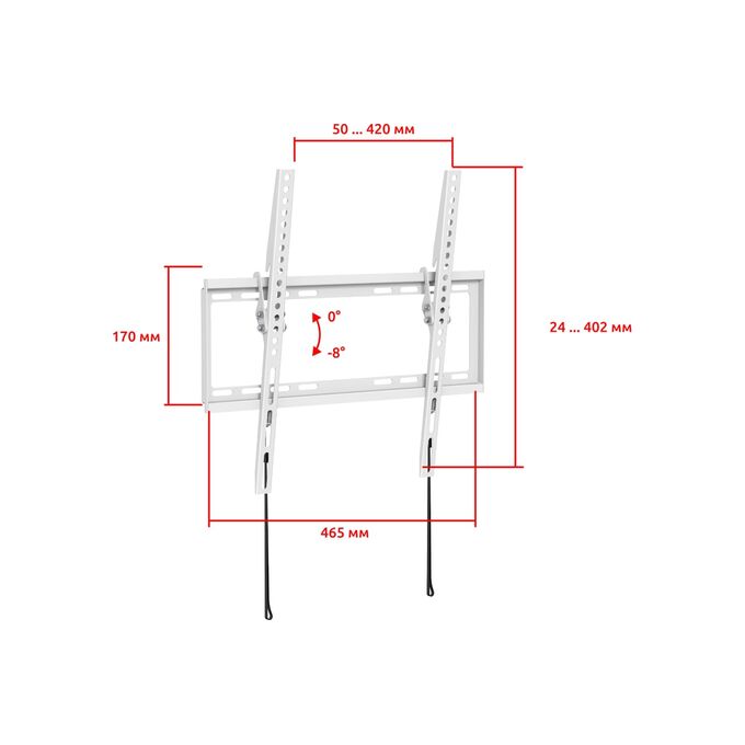Широкий выбор вариантов монтажных отверстий для установки на стену позволяет надежно зафиксировать кронштейн.