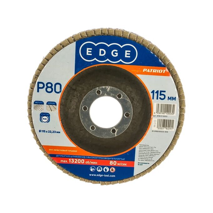 Круг лепестковый торцевой PATRIOT Edge 819010003 115мм*22,23мм*P80