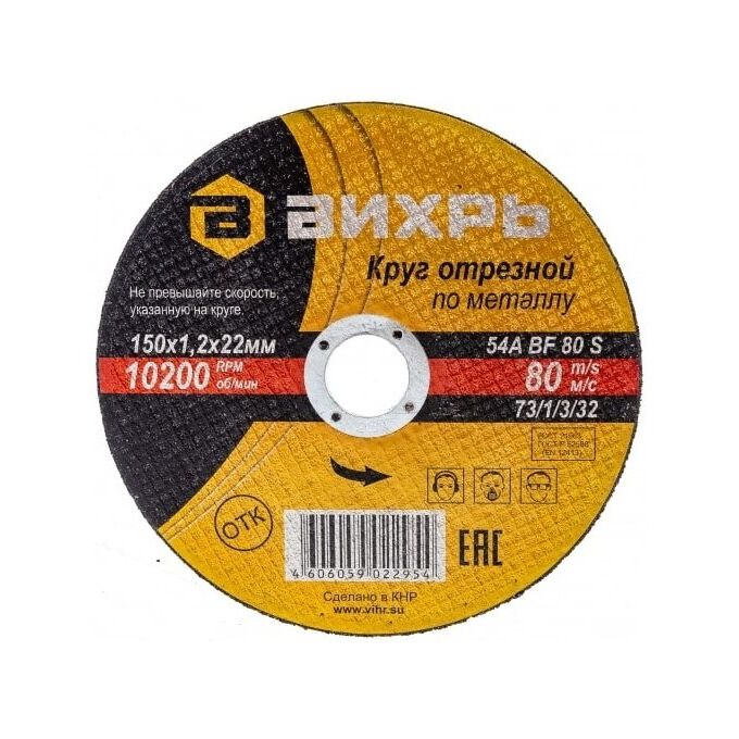 Круг отрезной по металлу Вихрь 150х1,2х22 мм 73/1/3/32