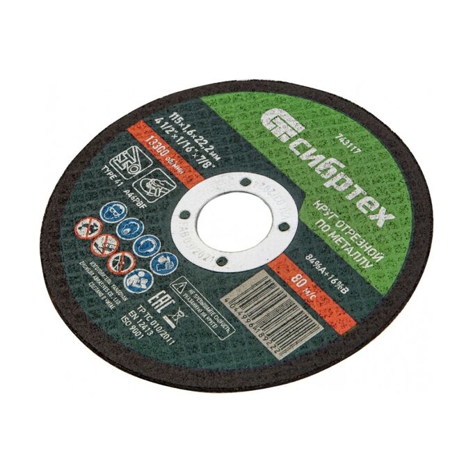 Круг отрезной Сибртех 743117 по металлу, 115х1,6х22,2 мм, 84%A+16%B