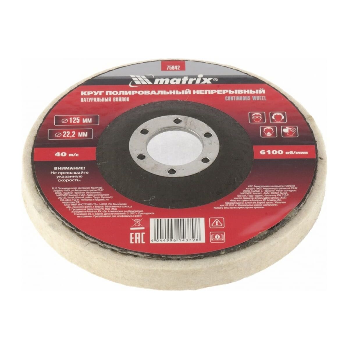 Круг полировальный MATRIX 75942 непрерывный из натурального войлока 125 х 22,2 мм