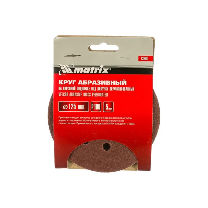 Круги абразивные Matrix 73805 на ворсовой подложке под липучку, перфорированные, P 100, 125 мм, 5 шт.