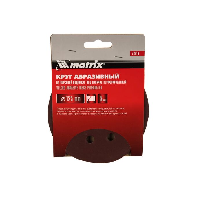 Круги абразивные Matrix 73816 на ворсовой подложке под липучку, перфорированные, P 500, 125 мм, 5 шт.