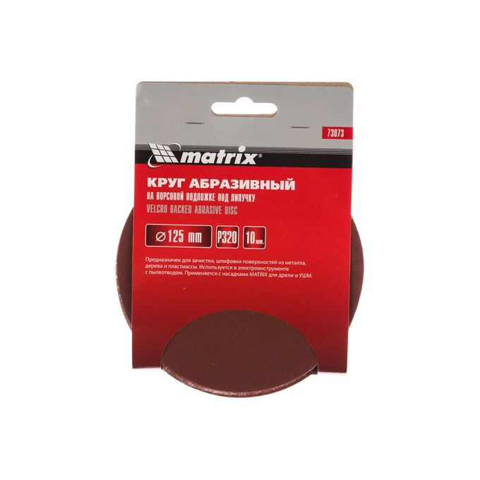 Круги абразивные Matrix 73873 на ворсовой подложке под липучку, P 10 шт