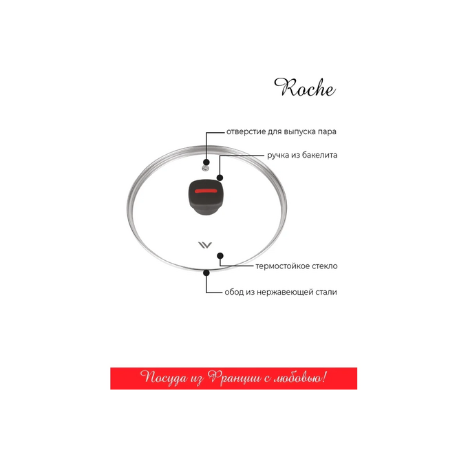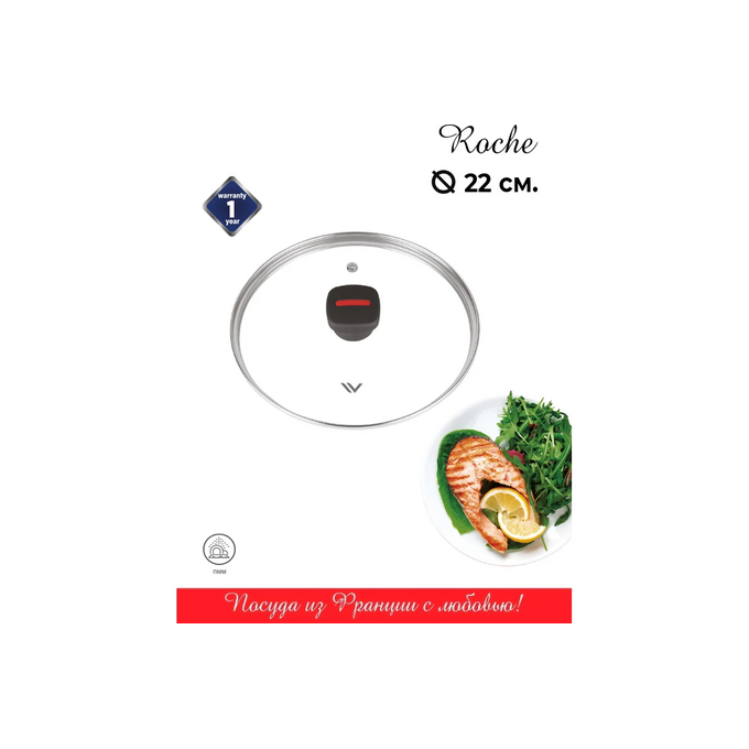 Крышка стеклянная Vensal Roche VS4308 22см с ободом из нержавеющей стали