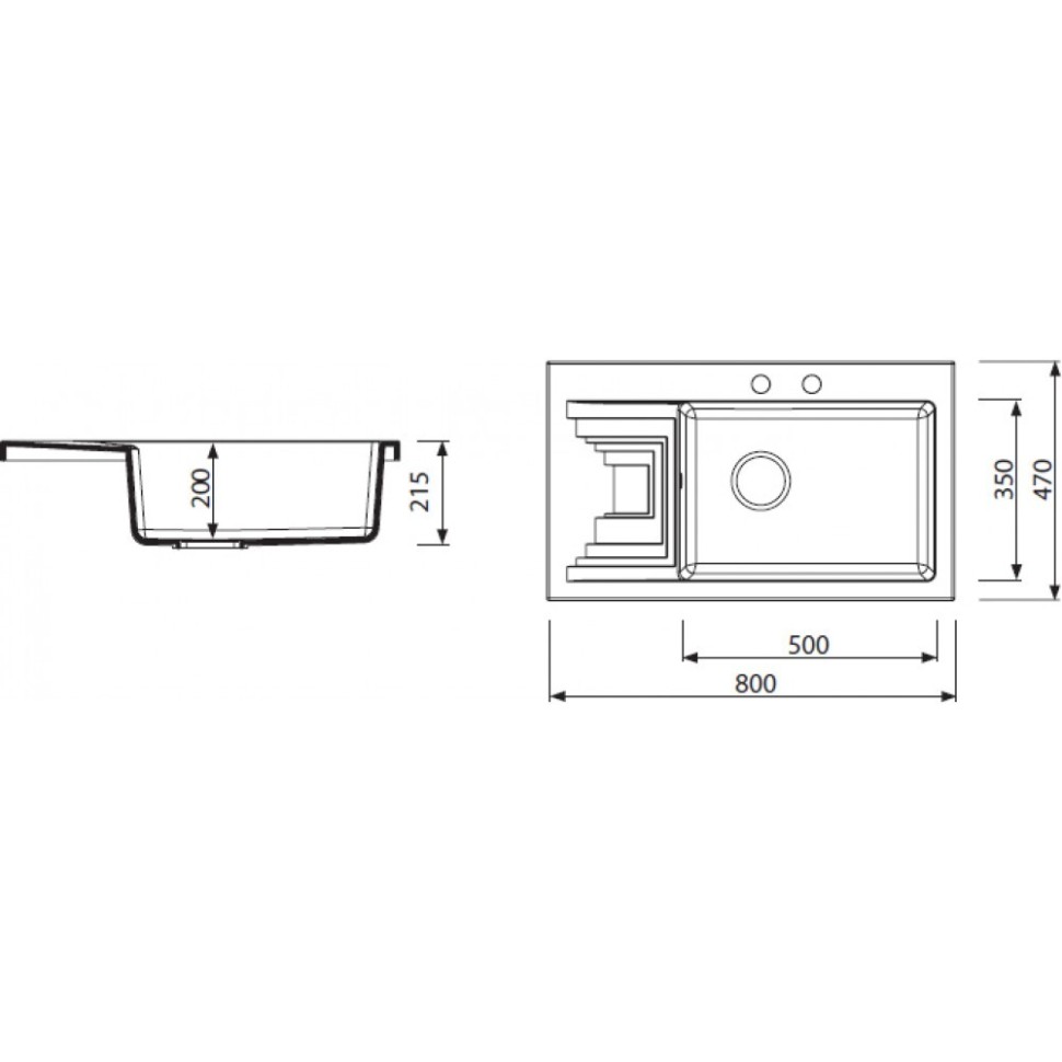 Кухонная мойка Marmorin Halit 520 113 012 black Metalic гранит, чаша+сушка (1b1d R) 800х470х215