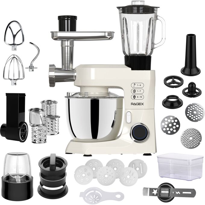 Кухонный комбайн RageX R119-111 26 в 1 RAGEX R119, 4.5л, 1300В пломбирно-бежевый)