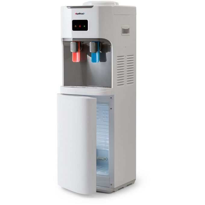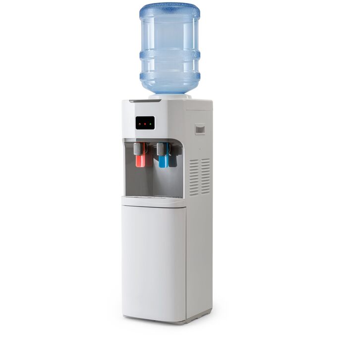 Кулер для воды с холодильником обладает мощной производительностью нагрева до 5,5 литров в час и охлаждения до 2 литров в час.