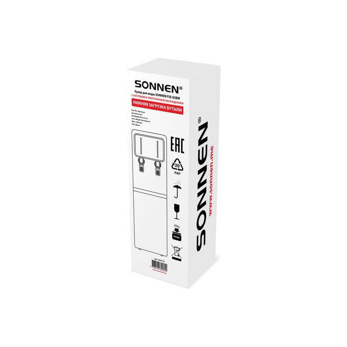 Кулер для воды SONNEN FSE-02BW (456170) напольный, нагрев/охлаждение, нижняя загрузка, 2 крана, белый