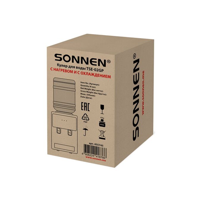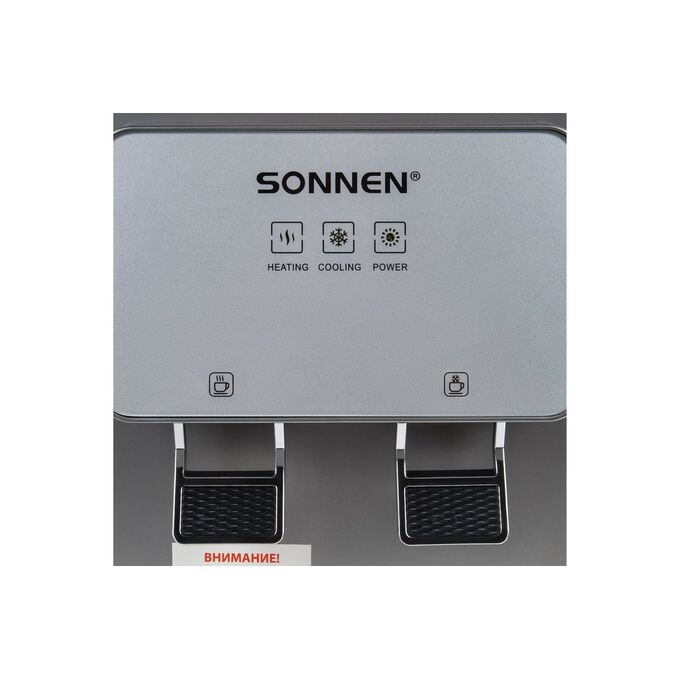 Кулер для воды SONNEN TSE-02GP (455745) настольный, нагрев/охлаждение электронное, 2 крана, серебристый
