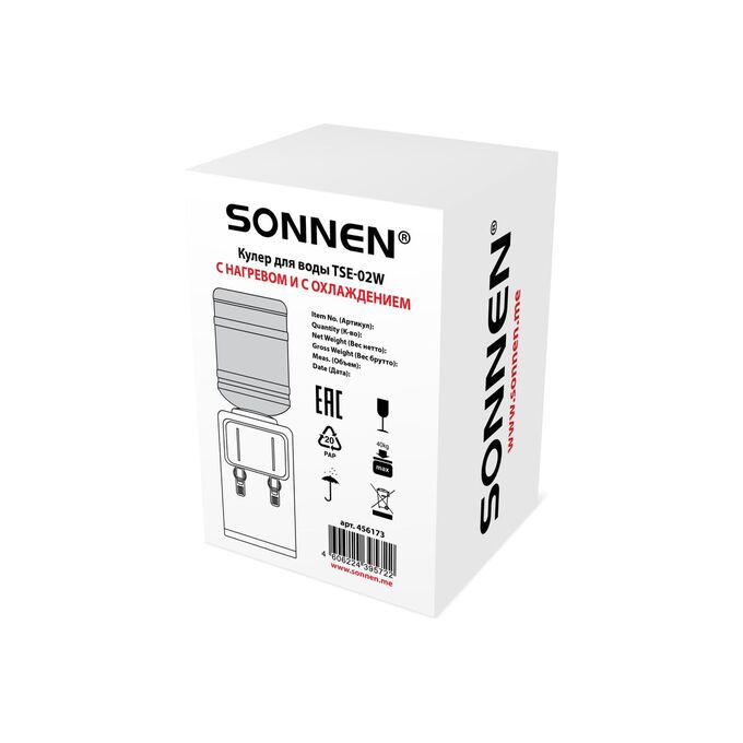 Кулер для воды SONNEN TSE-02W (456173) настольный, нагрев/охлаждение электронное, 2 крана, белый