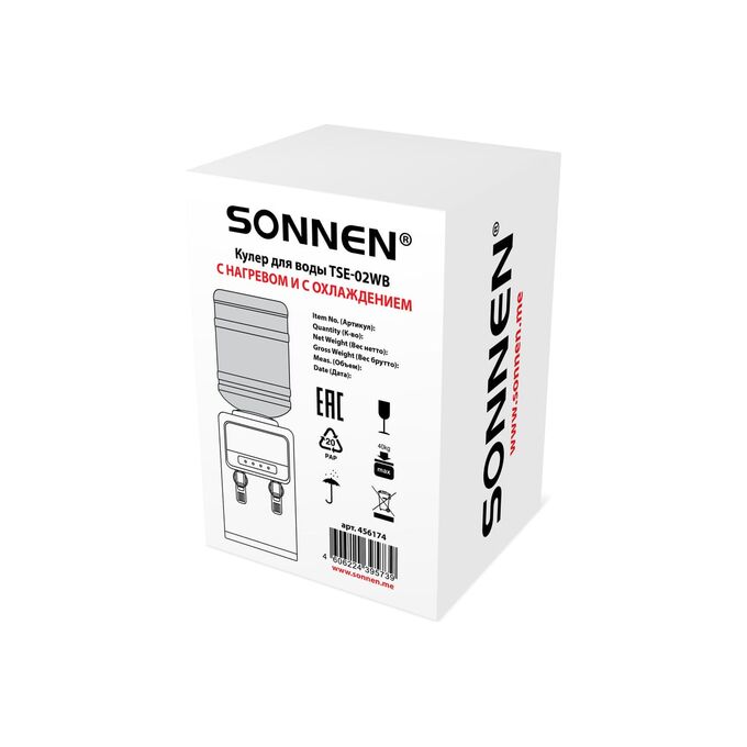 Кулер для воды SONNEN TSE-02WB (456174) настольный, нагрев/охлаждение электронное, 2 крана, черный