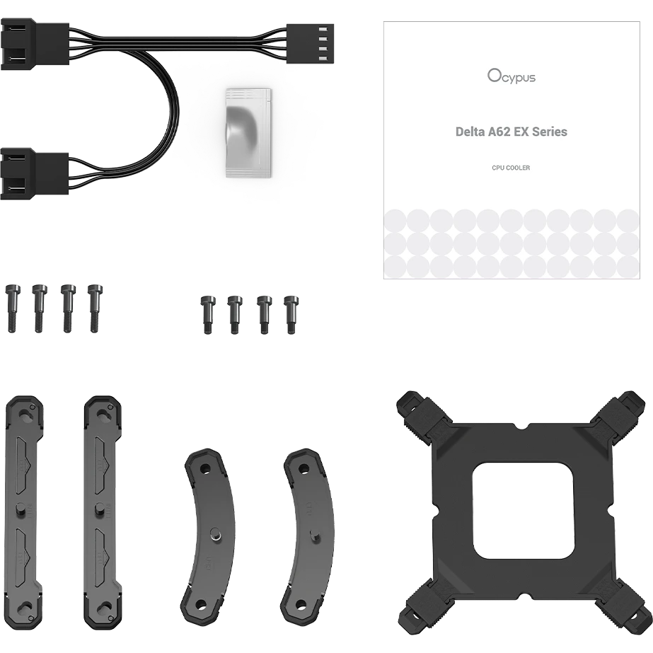 Кулер Ocypus Delta A62 EX BK Digital, 2x120mm ARGB Fan, Top Display Panel, 6 Heat Pipes, 4-Pin PWM, 600-1800 RPM, 31DBA