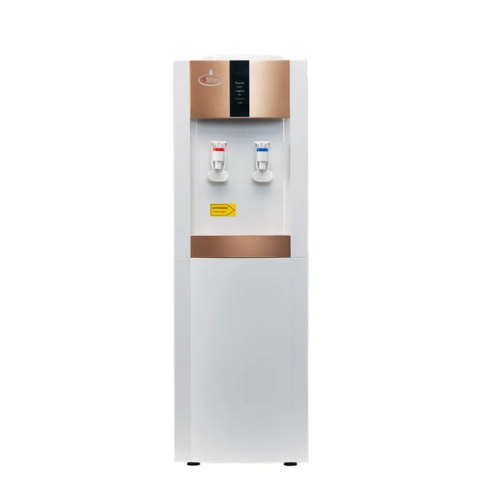 Напольный кулер для воды с шкафчиком, имеет функцию нагрева и охлаждения (электронное), классический дизайн.