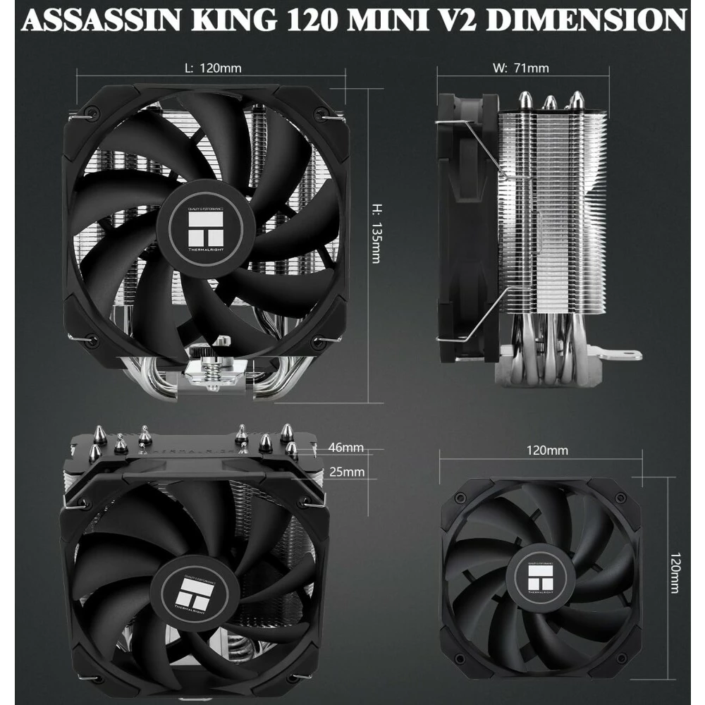 Кулер Thermalright Assassin King 120 Mini (AK120-Mini-V2) Soc-AM5/AM4/1151/1200/2066/2011/1700 4-pin 25.2dB Al+Cu 980gr Ret