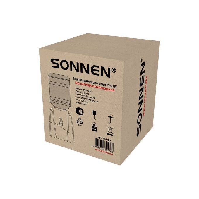 Кулер-водораздатчик SONNEN TS-01W (456175) без нагрева и охлаждения, настольный, 1 кран, белый
