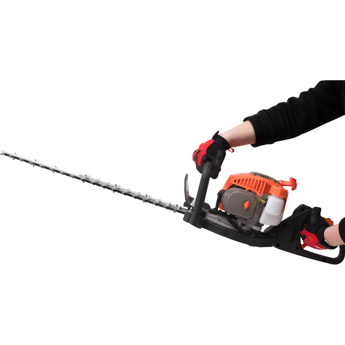 Бензиновый кусторез Ex Kasei SLP600S представляет собой бытовой инструмент, идеально подходящий для ухода за кустарниками и живыми изгородями. Оснащенный мощным двигателем в 0,9 л.с. и объемом 22,5 см³, он обеспечивает надежную и эффективную работу. Двусторонний нож длиной 60 см позволяет легко справляться с ветвями толщиной до 2,5 мм.