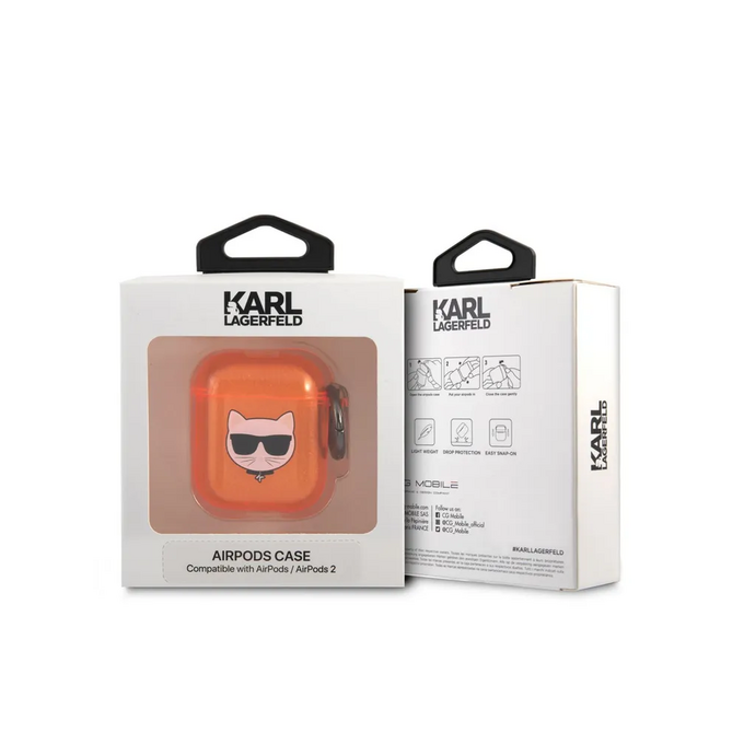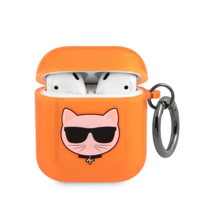 Lagerfeld для Airpods 1/2 чехол TPU FLUO with ring Choupette Transp Orange