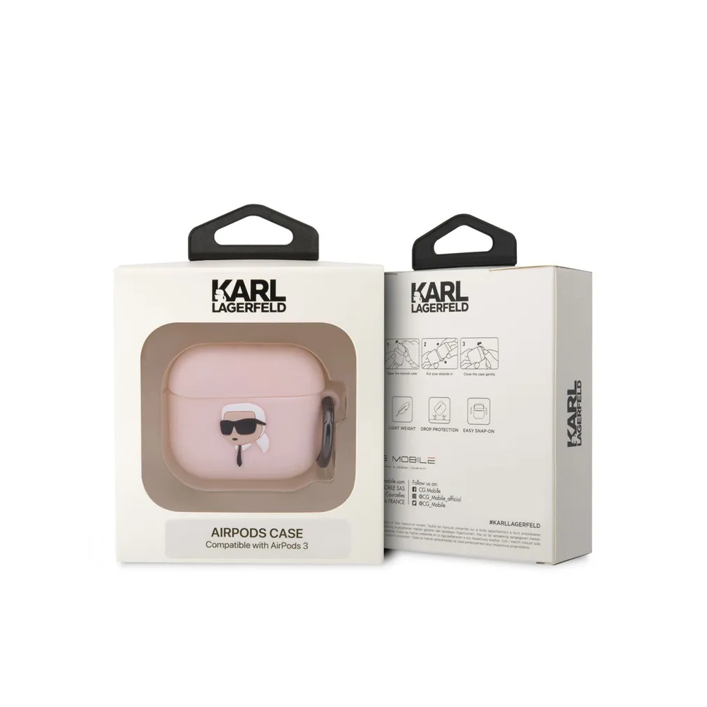 Lagerfeld для Airpods 3 чехол Silicone case with ring NFT 3D Karl Pink