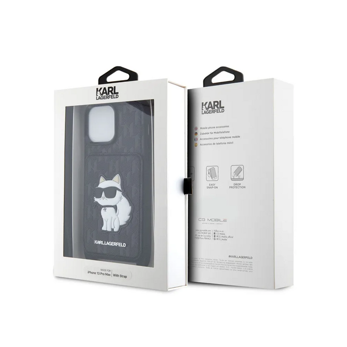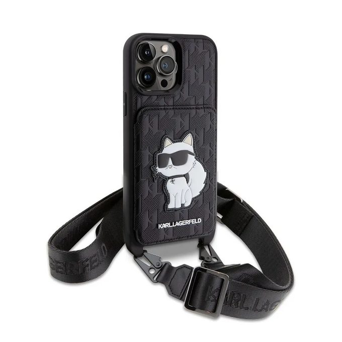 Lagerfeld для iPhone 13 Pro Max чехол Crossbody cardslot PU Saffiano Monogram NFT Choupette Hard Blk