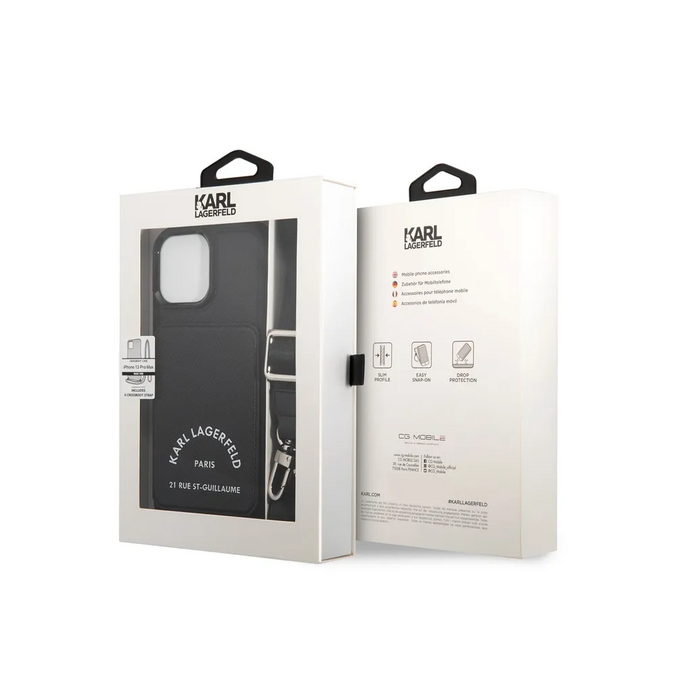 Lagerfeld для iPhone 13 Pro Max чехол Crossbody cardslot PU Saffiano RSG Hard Black