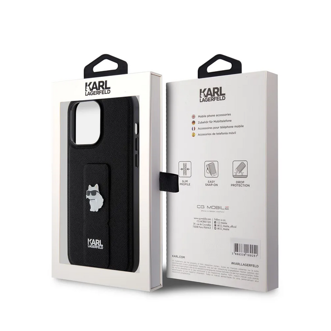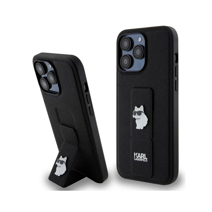 Lagerfeld для iPhone 13 Pro Max чехол GripStand PU Saffiano NFT Choupette metal Hard Black