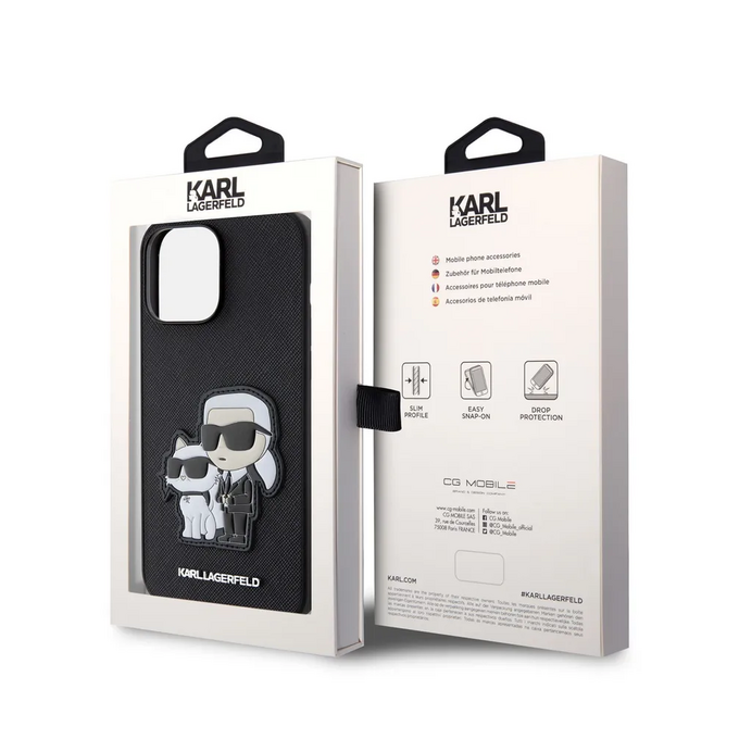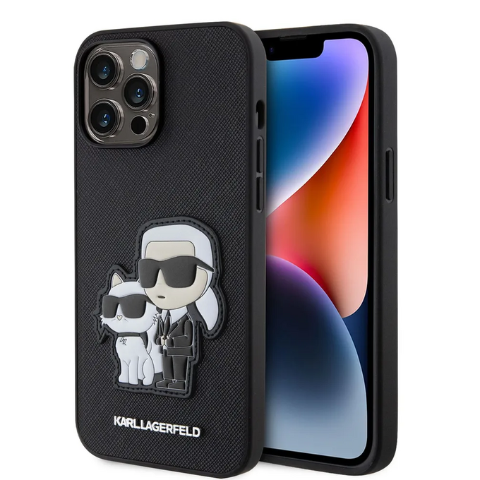 Lagerfeld для iPhone 13 Pro Max чехол PU Saffiano NFT Karl & Choupette Hard Black