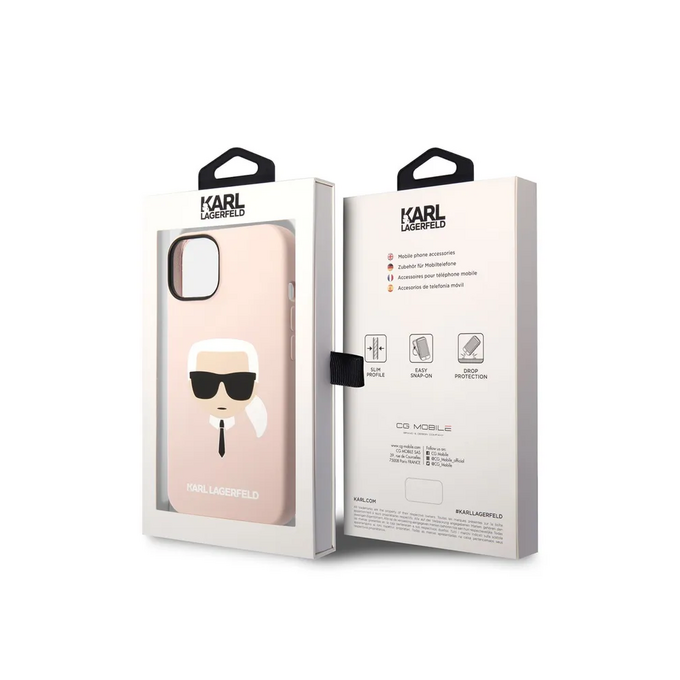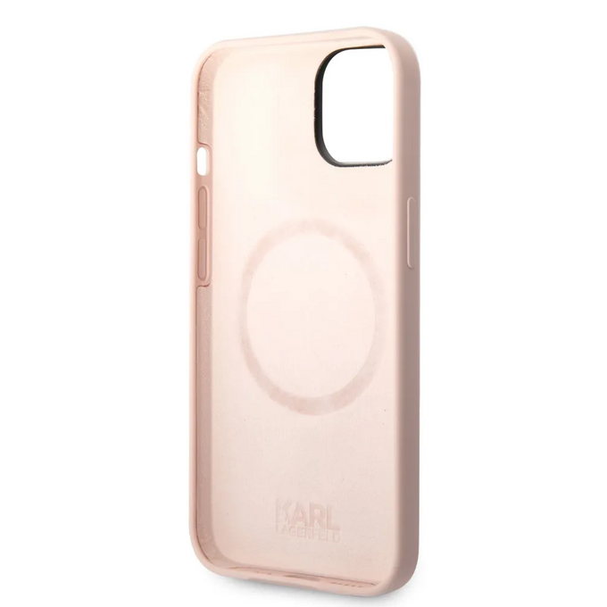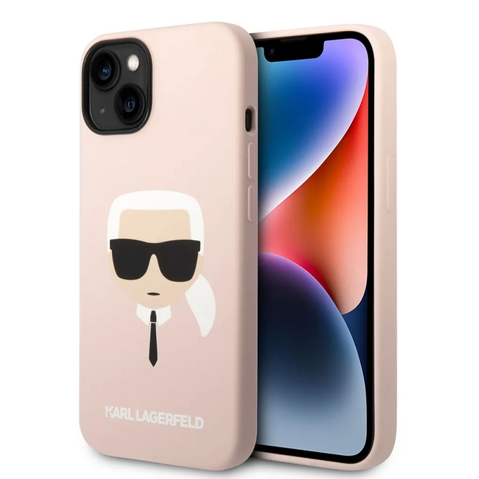 Lagerfeld для iPhone 14 Plus чехол Liquid silicone Karl's Head Hard Pink (MagSafe)