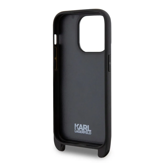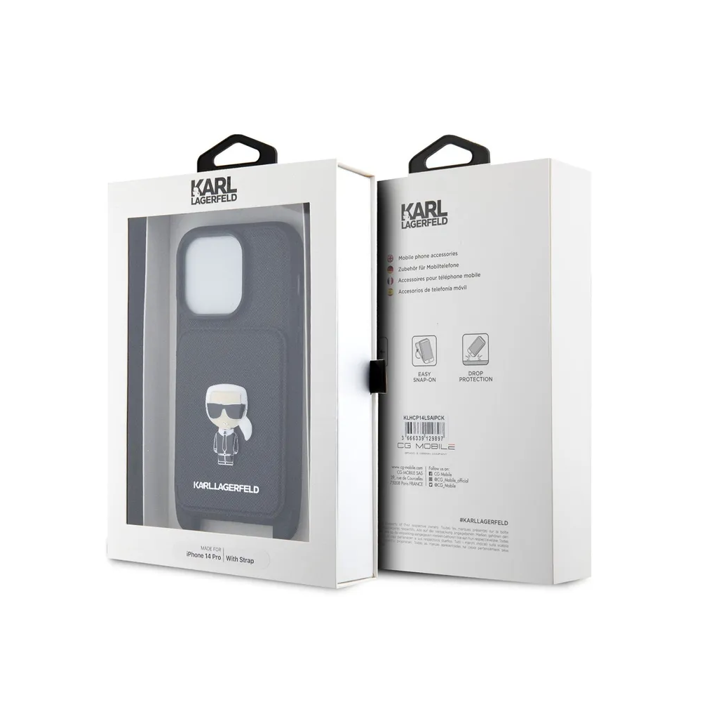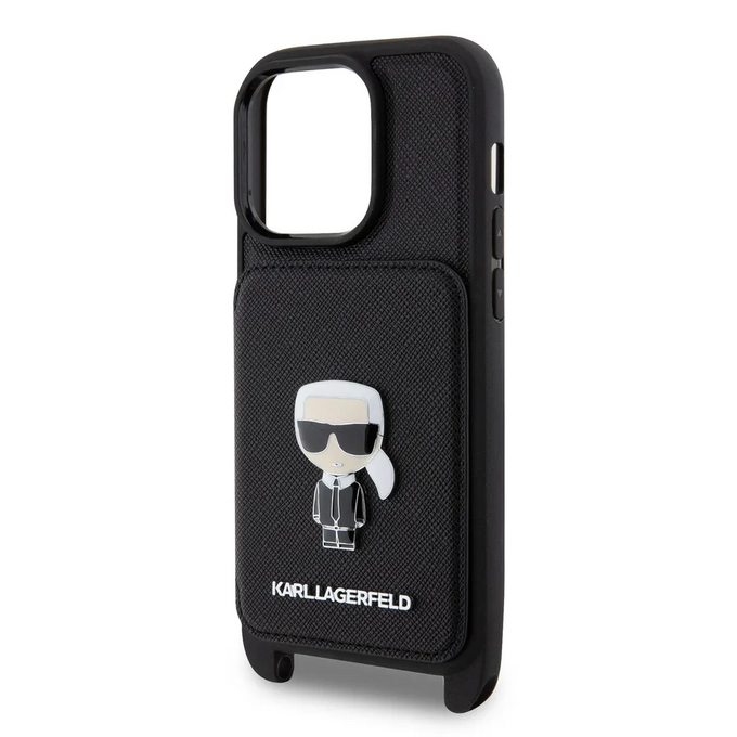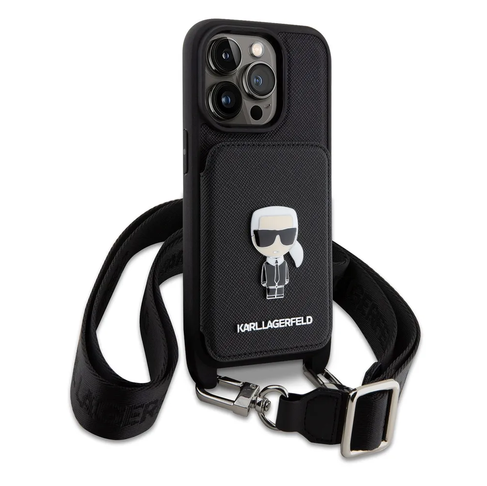 Lagerfeld для iPhone 14 Pro чехол Crossbody cardslot PU Saffiano Karl Ikonik metal Hard Black