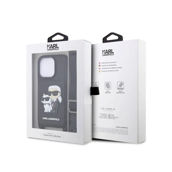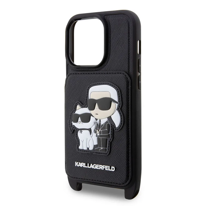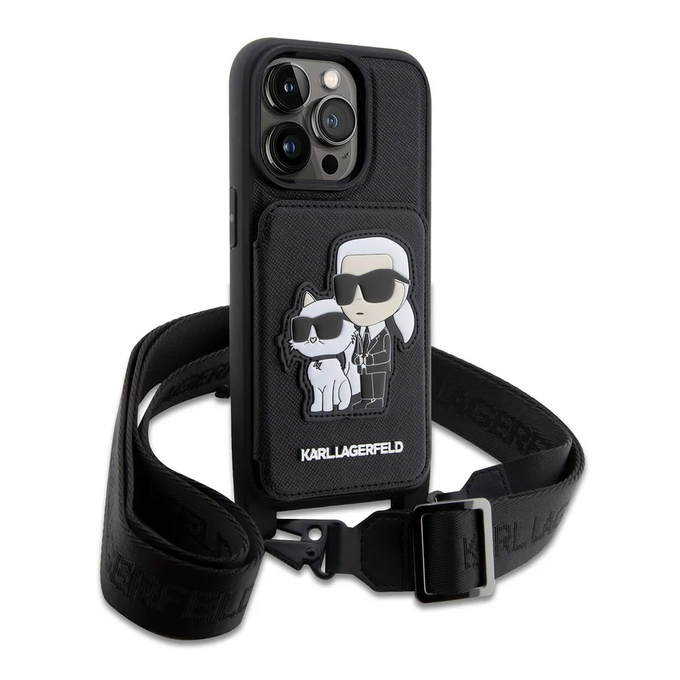 Lagerfeld для iPhone 14 Pro чехол Crossbody cardslot PU Saffiano NFT Karl&Choupette Hard Black