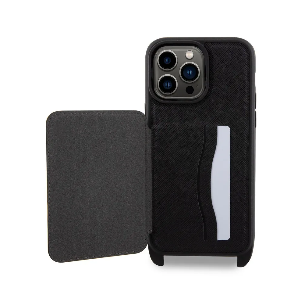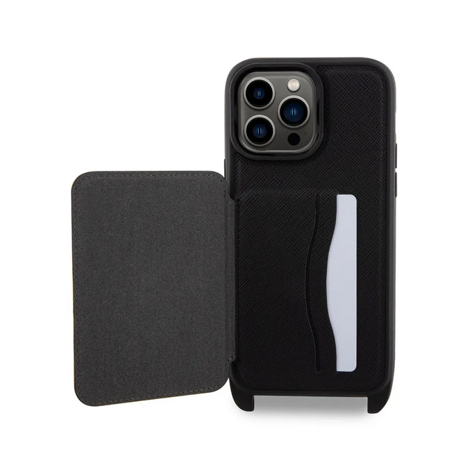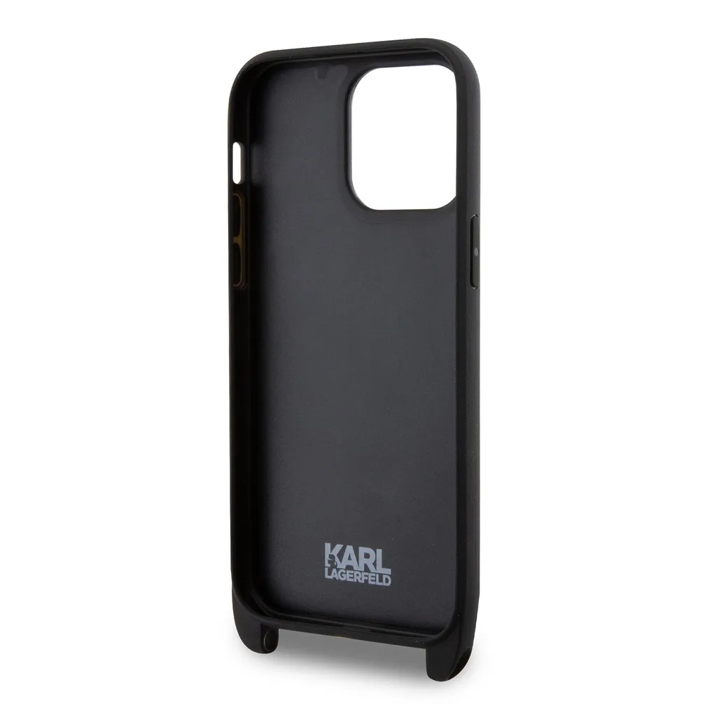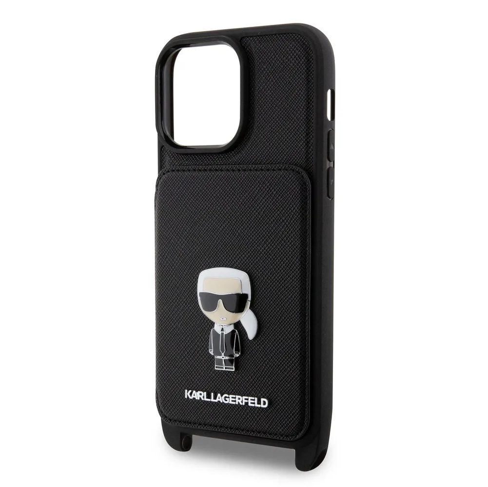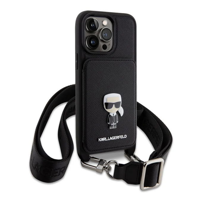 Lagerfeld для iPhone 14 Pro Max чехол Crossbody cardslot PU Saffiano Karl Ikonik metal Hard Black