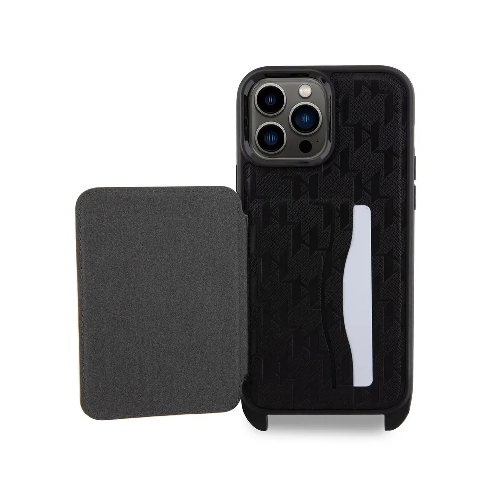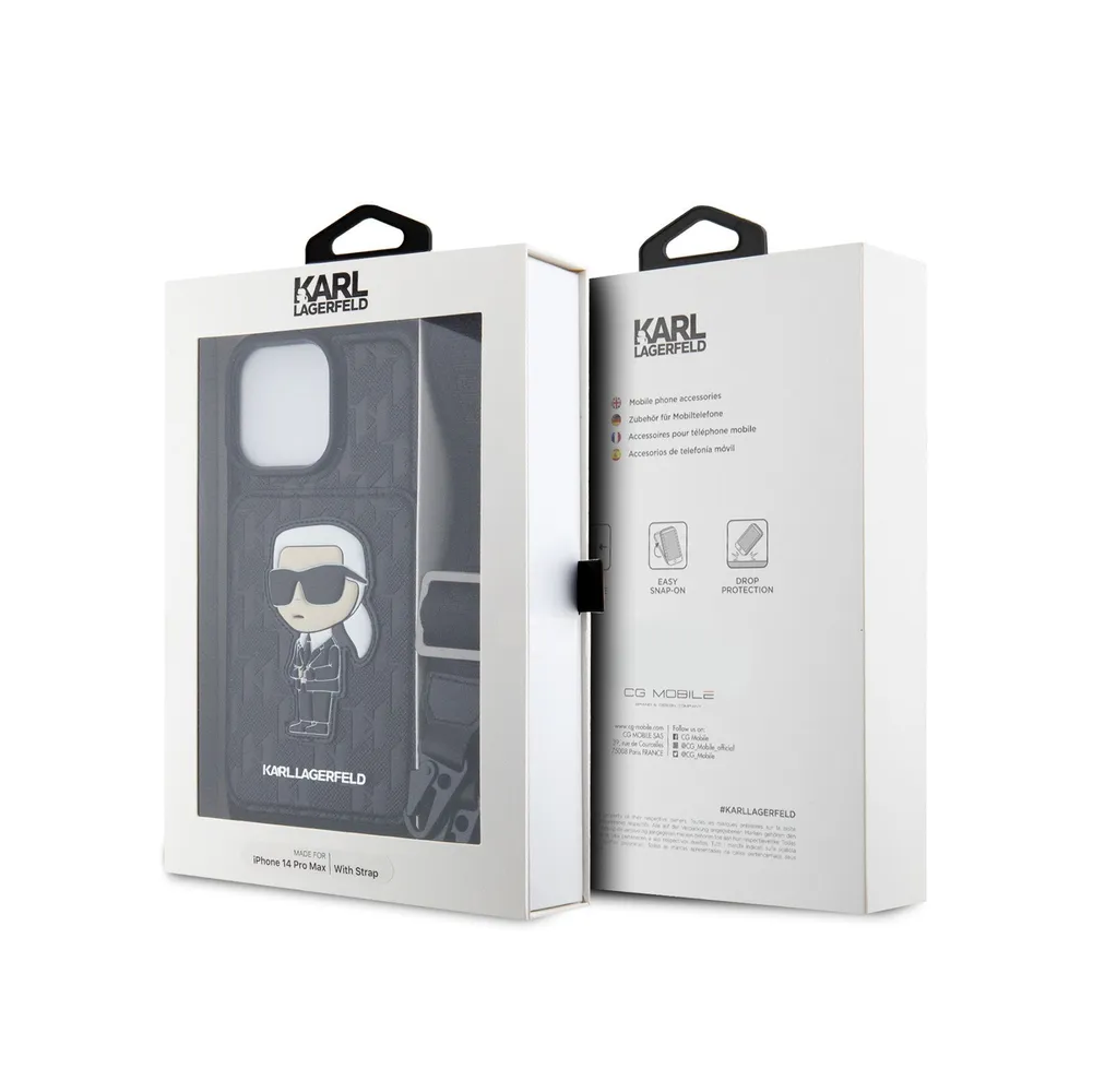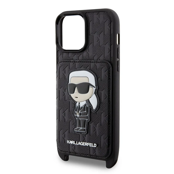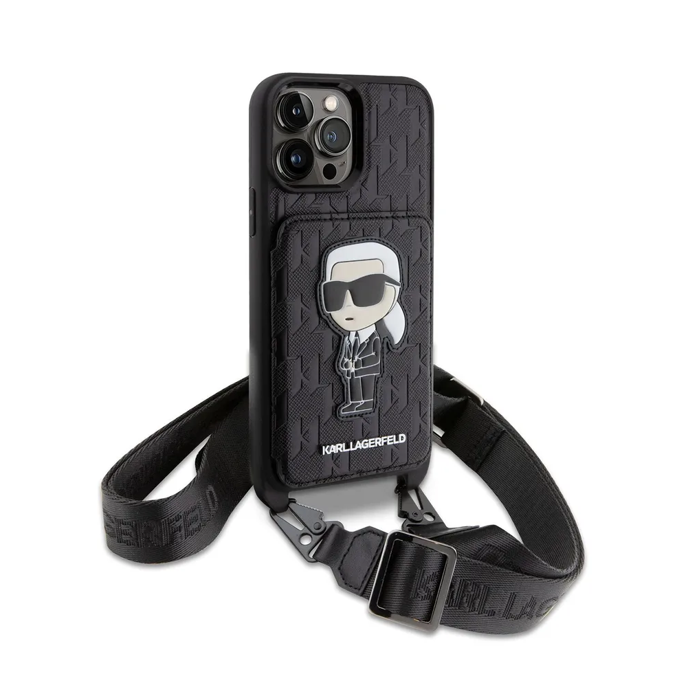 Lagerfeld для iPhone 14 Pro Max чехол Crossbody cardslot PU Saffiano Monogram NFT Karl Ikon Hard Blk