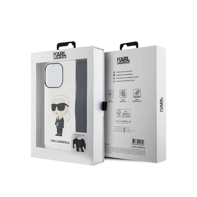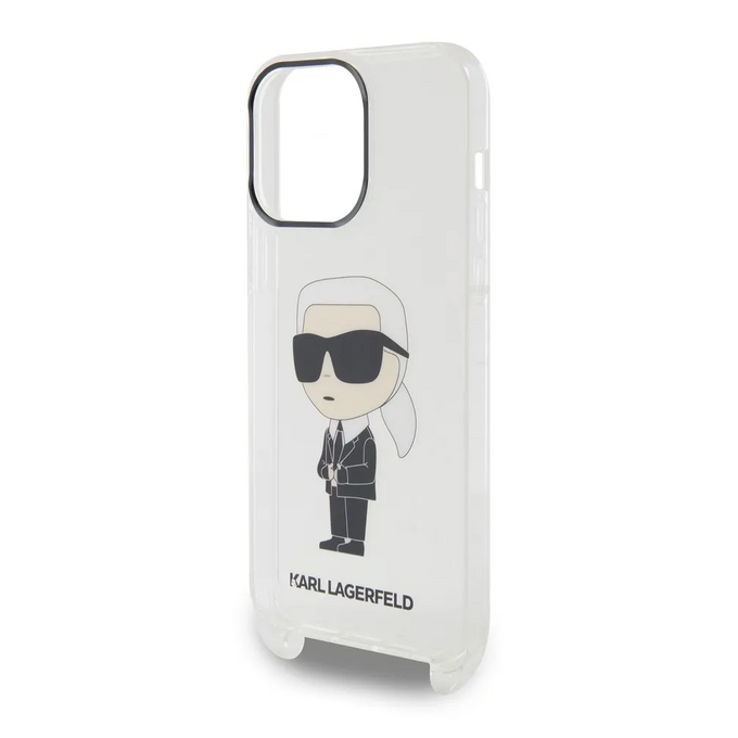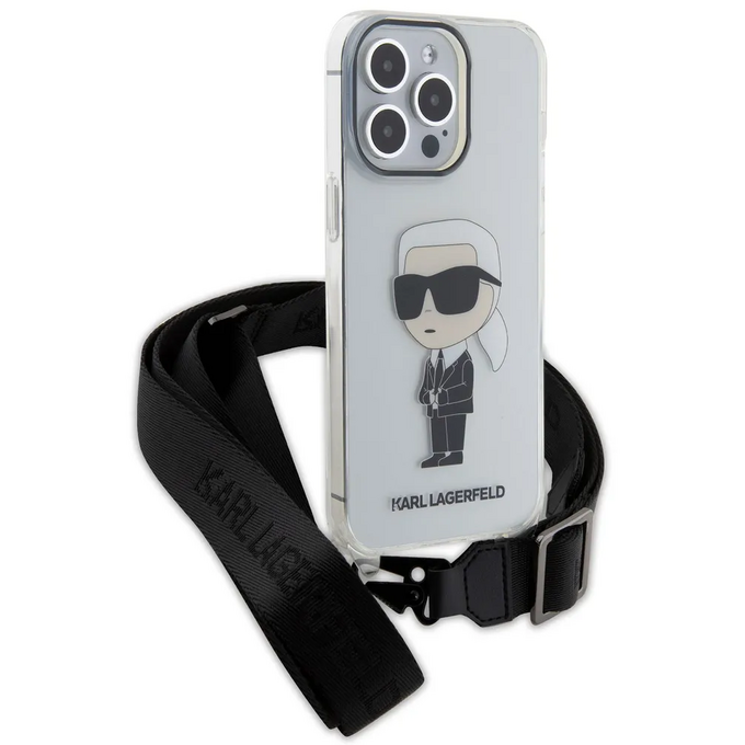 Lagerfeld для iPhone 14 Pro Max чехол Crossbody PC/TPU NFT Karl Ikonik + Big Strap Hard Transparent