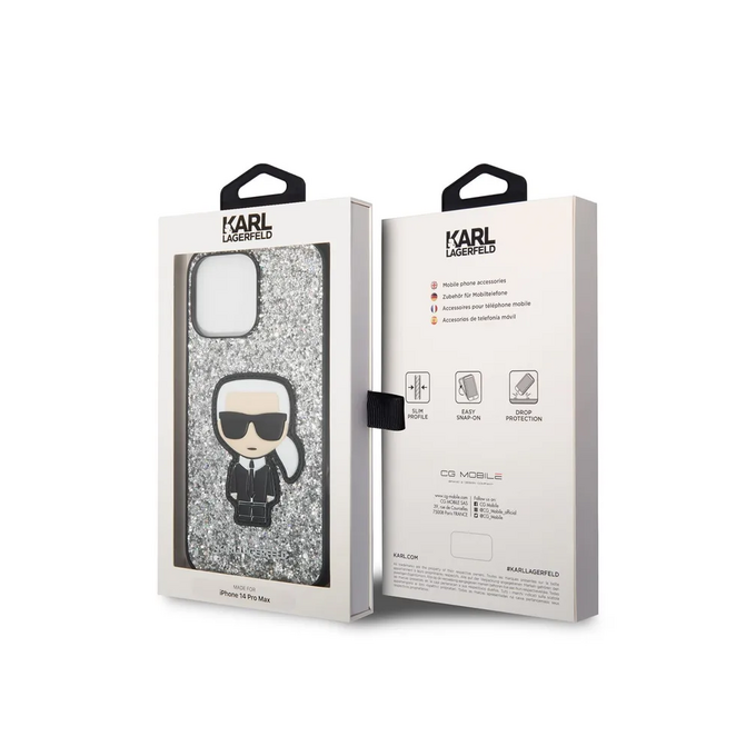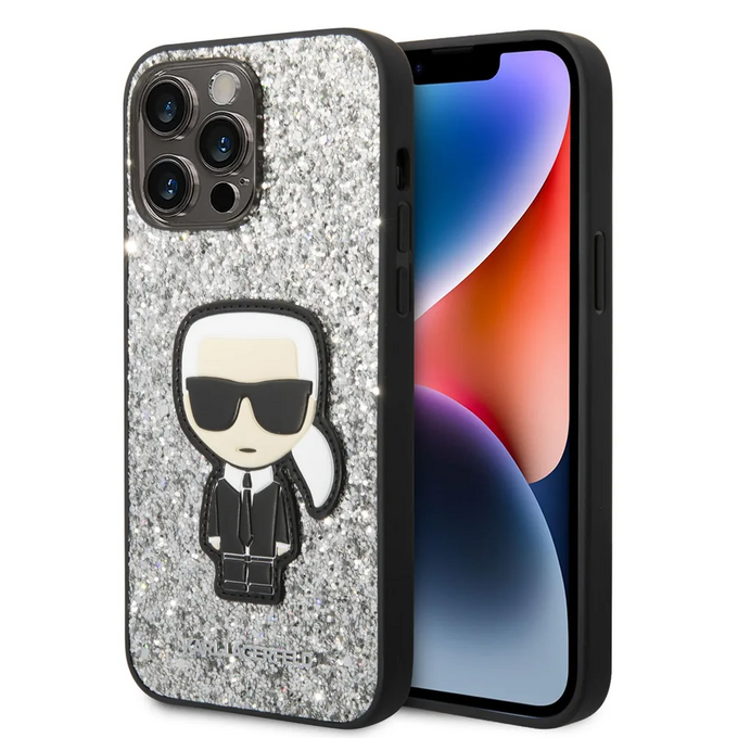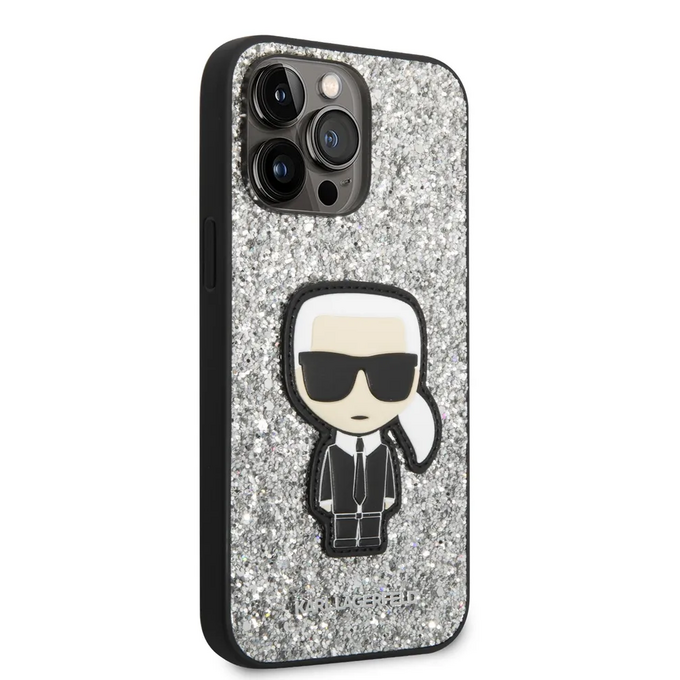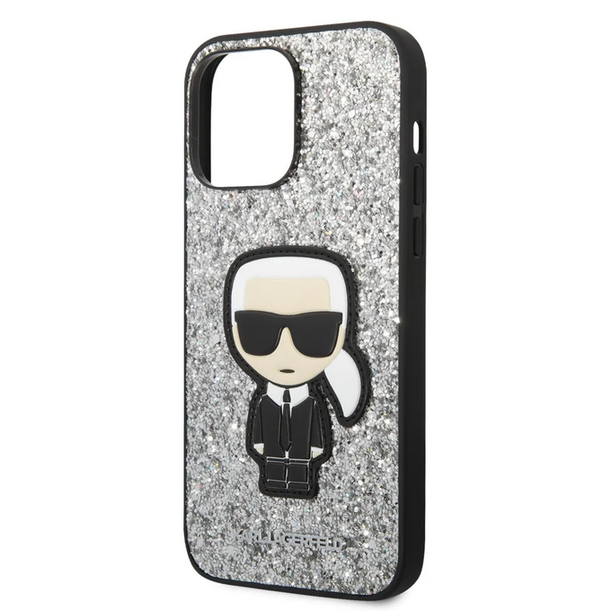 Lagerfeld для iPhone 14 Pro Max чехол Glitter flakes Ikonik patch Metal logo Hard Silver