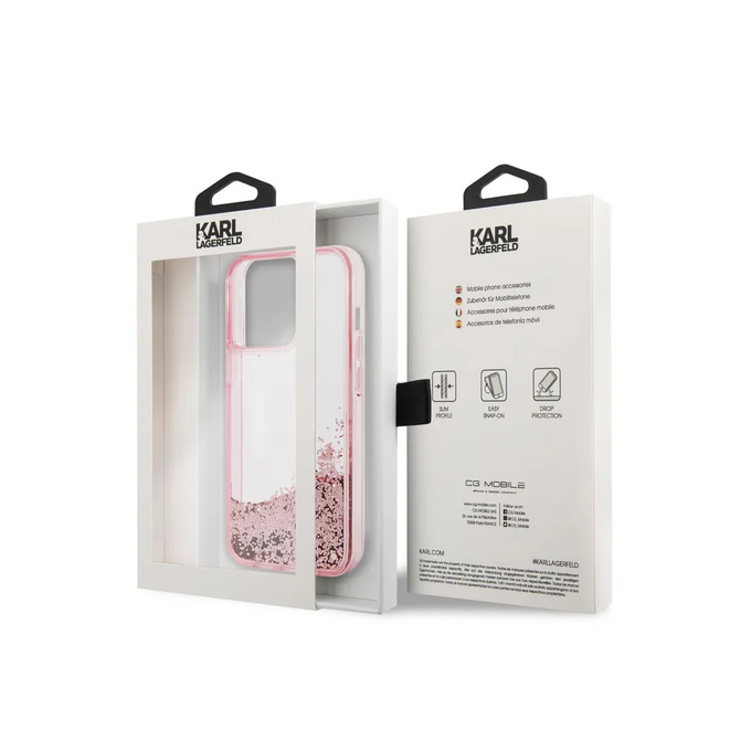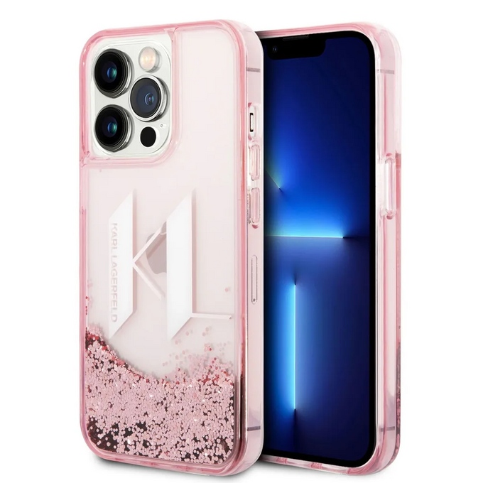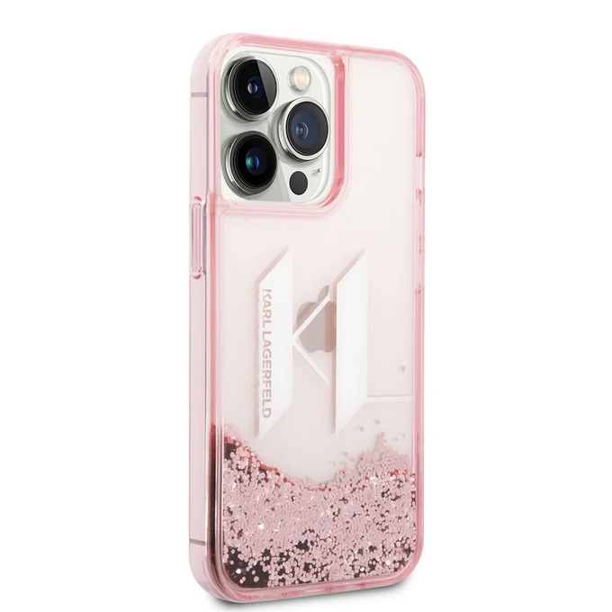 Lagerfeld для iPhone 14 Pro Max чехол Liquid Glitter Big KL logo Hard Pink