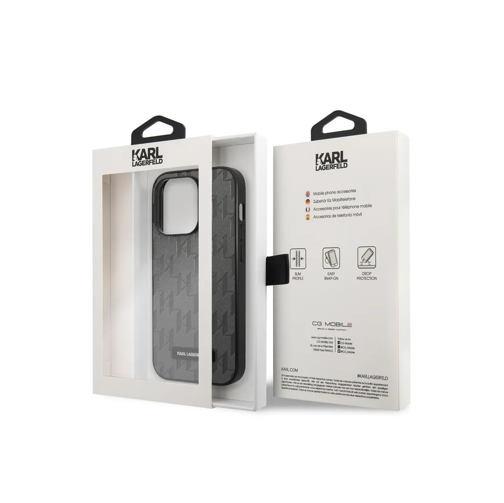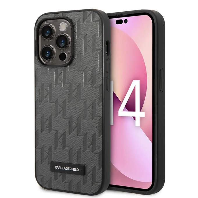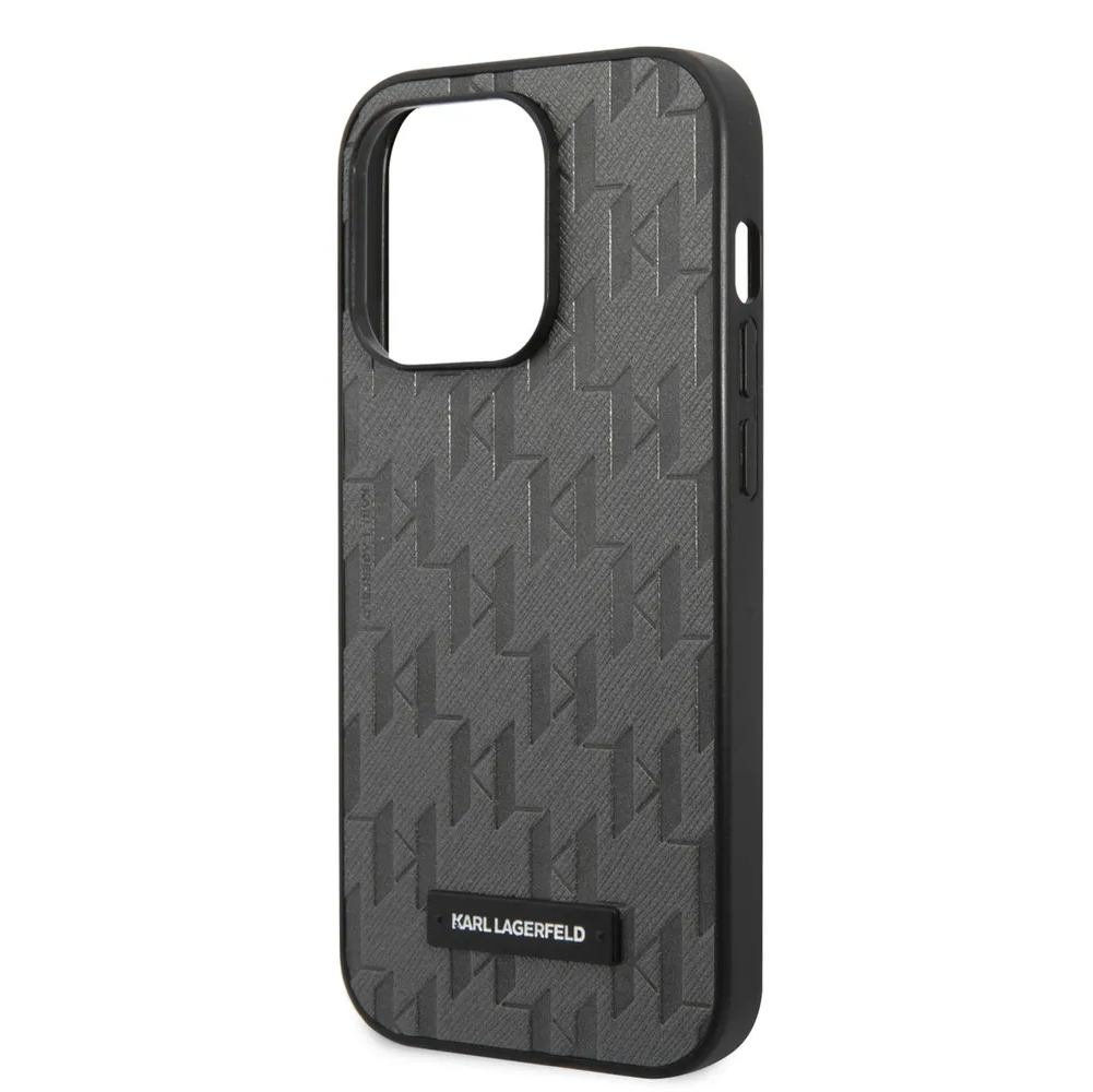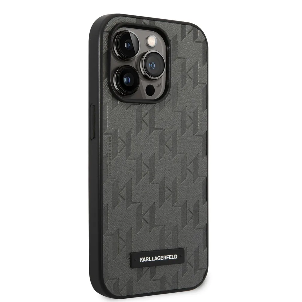 Lagerfeld для iPhone 14 Pro Max чехол PU Saffiano Monogram Metal logo Hard Grey