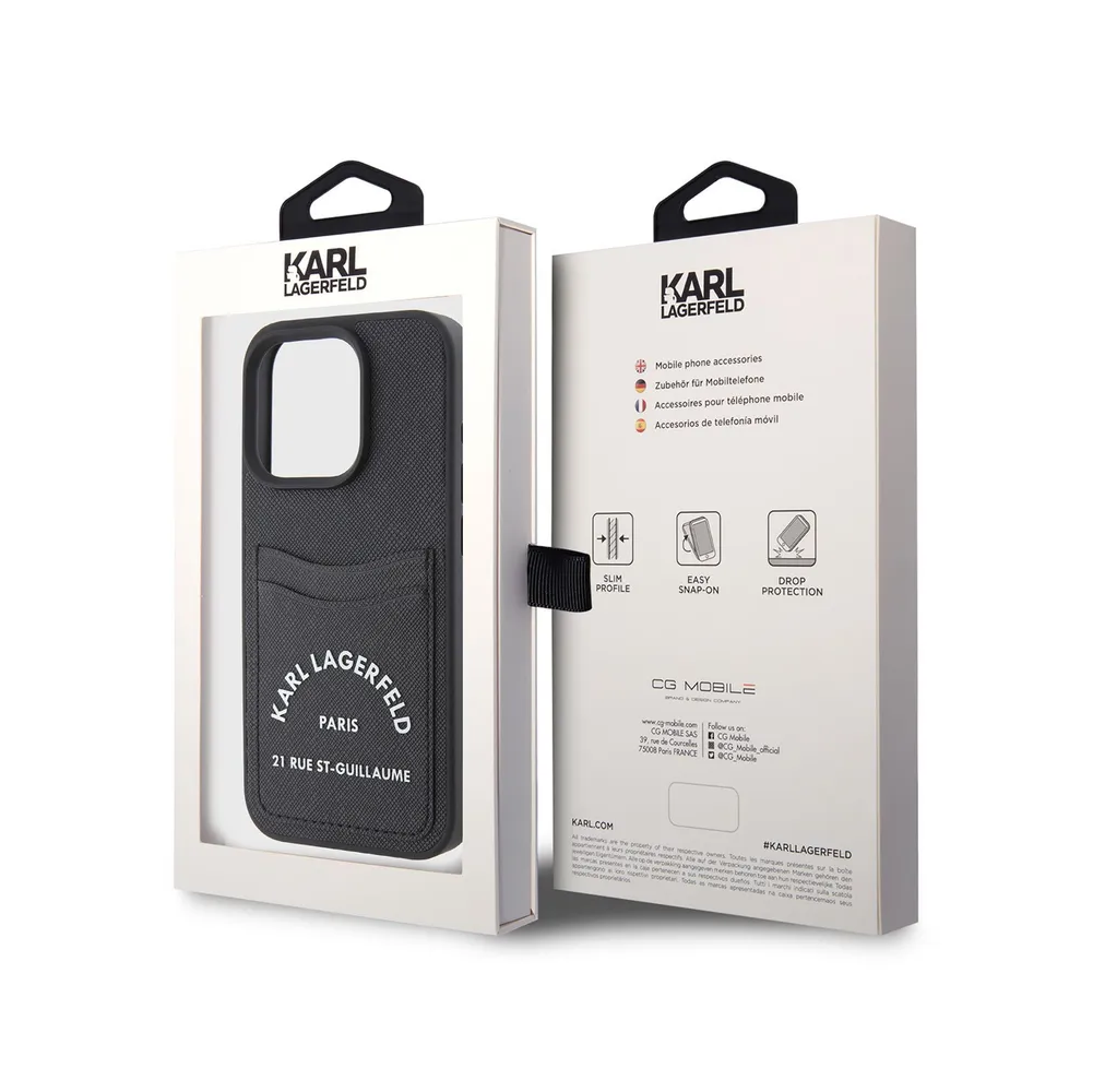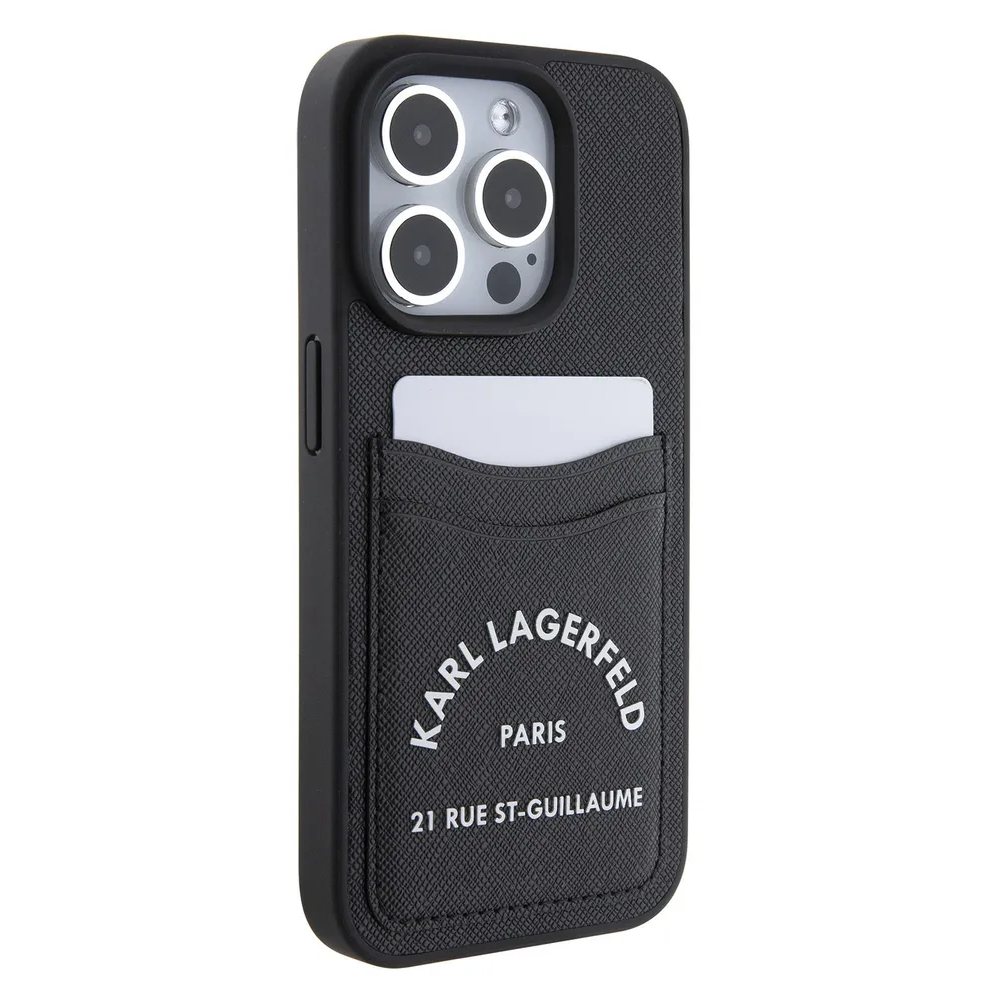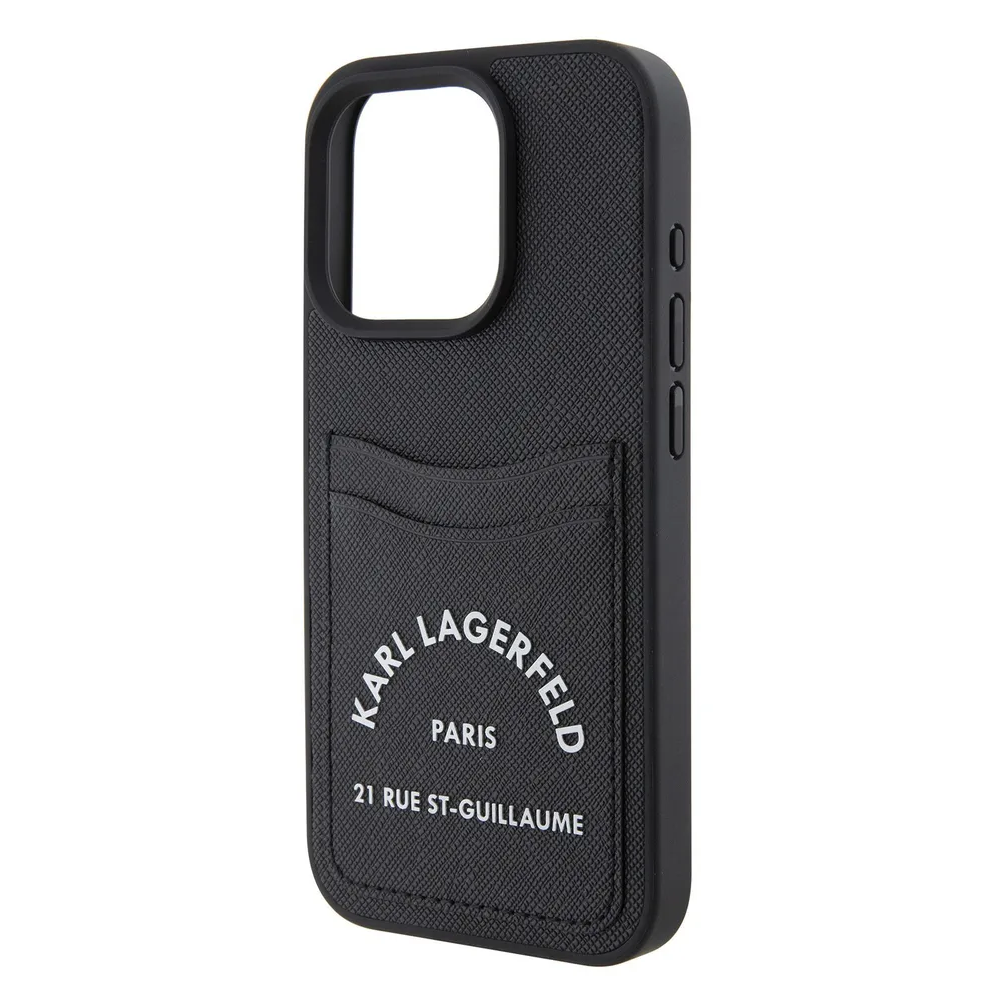 Lagerfeld для iPhone 15 Pro чехол Cardslot PU Saffiano RSG 3D rubber logo Hard Black