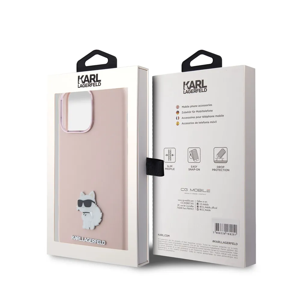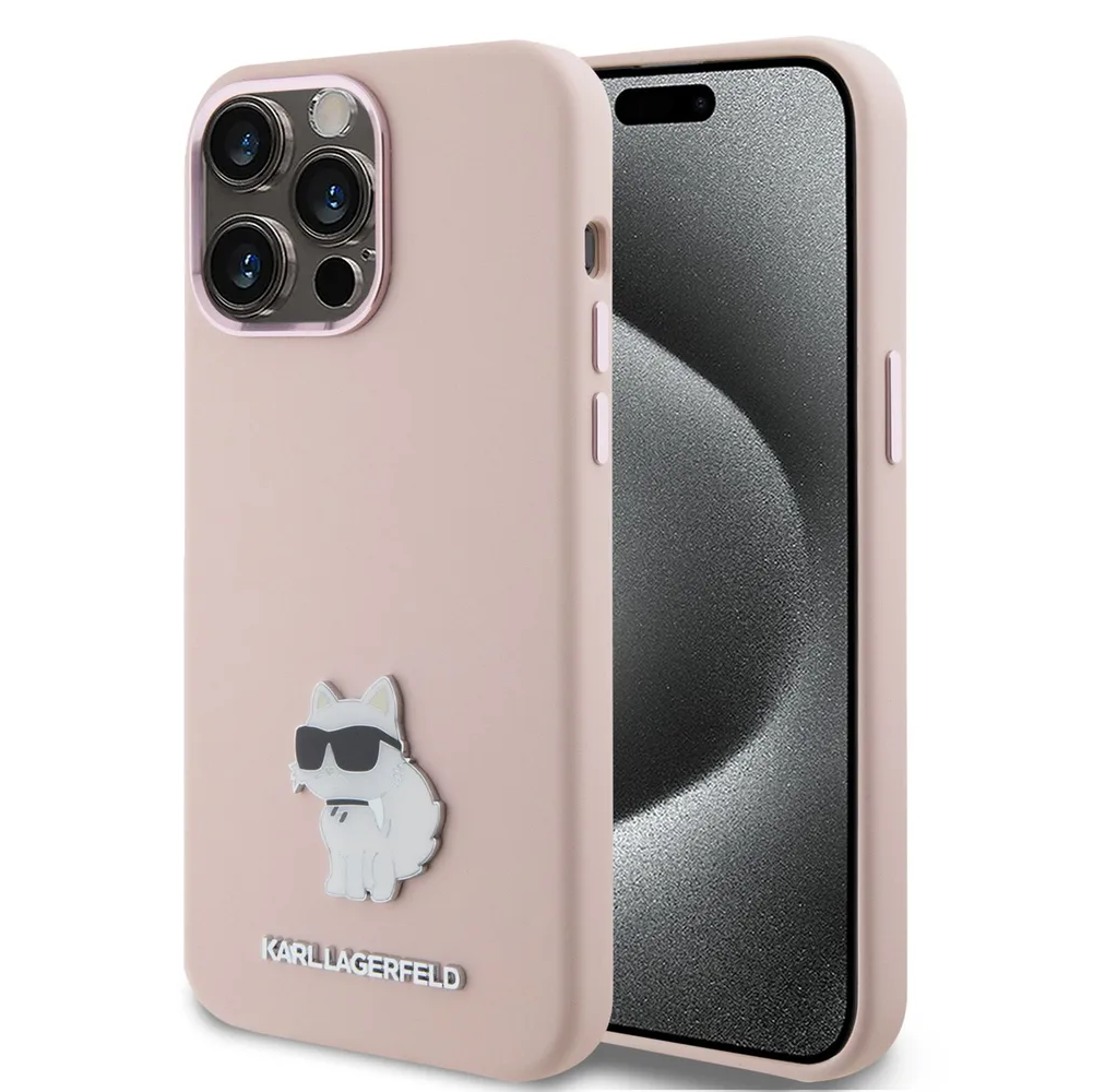 Lagerfeld для iPhone 15 Pro чехол Liquid silicone NFT Choupette metal pin Hard Pink