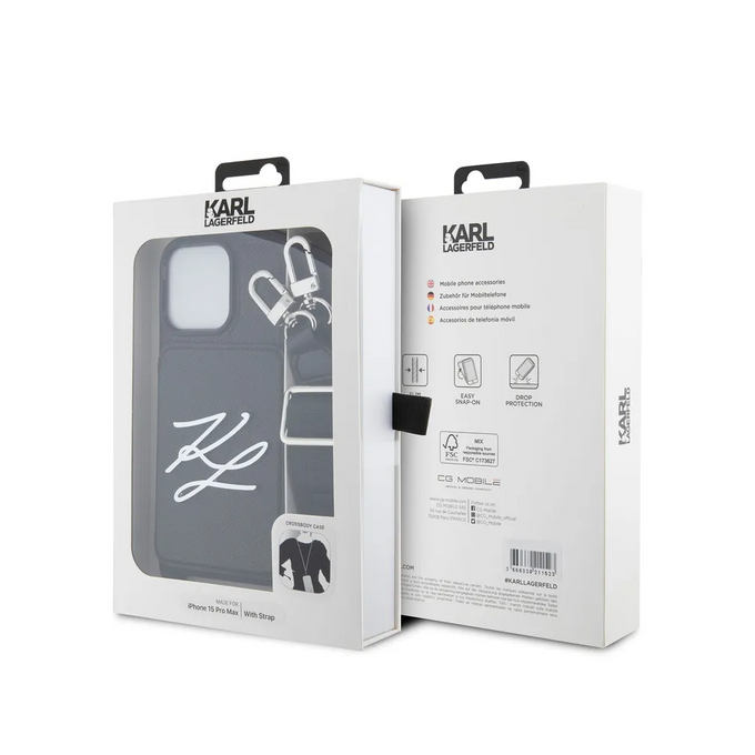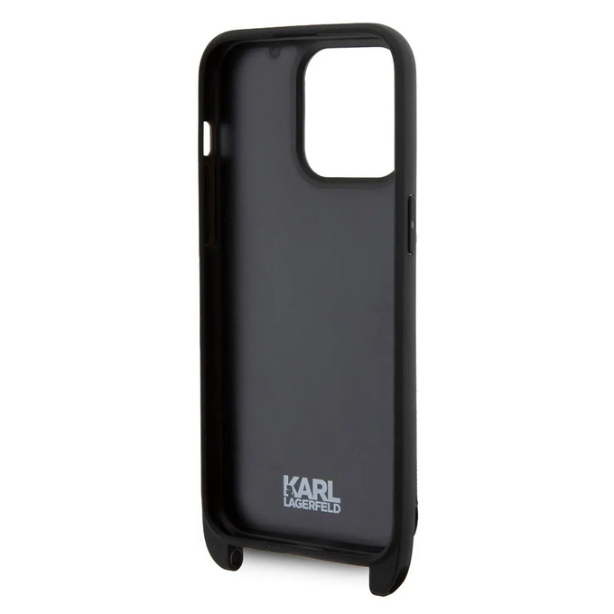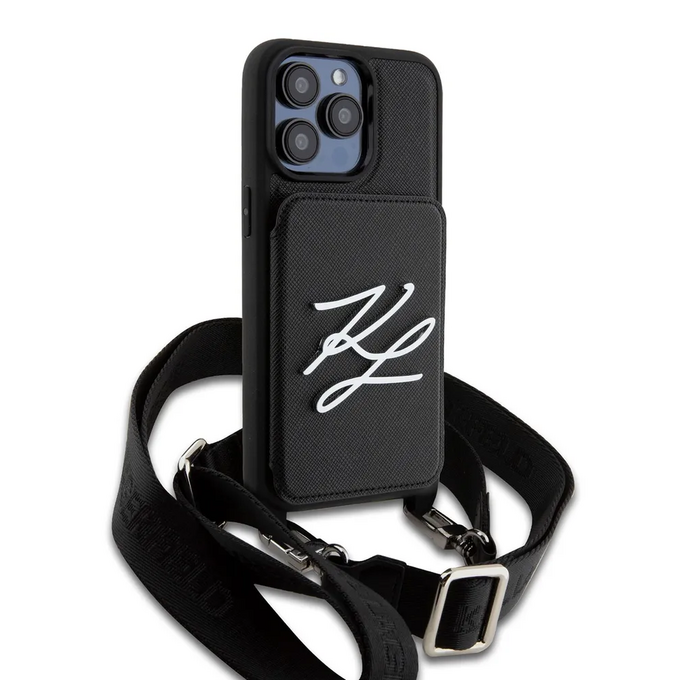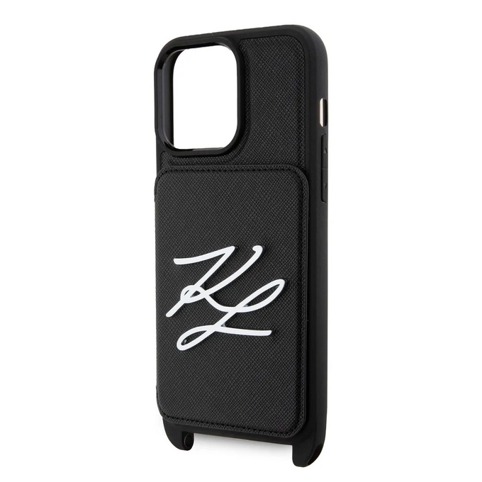 Lagerfeld для iPhone 15 Pro Max чехол Crossbody cardslot PU Saffiano Autograph Hard Black