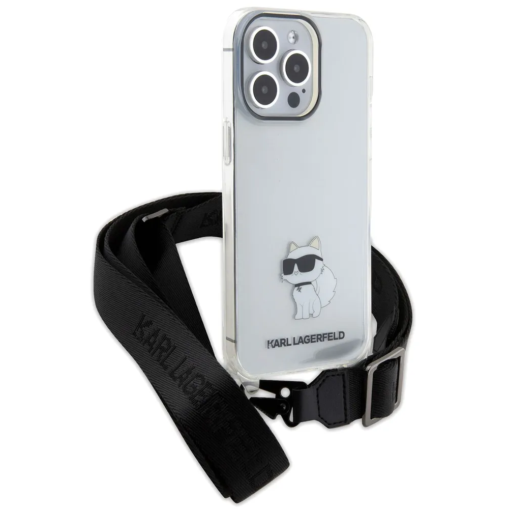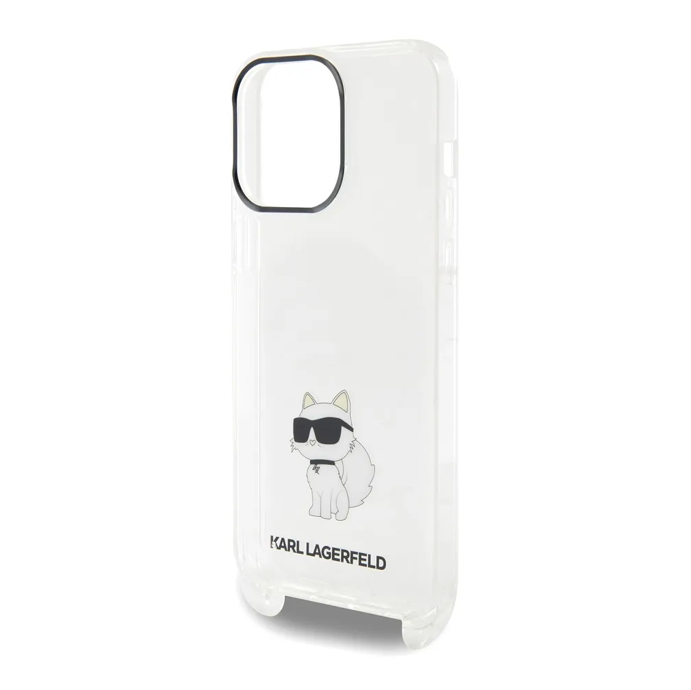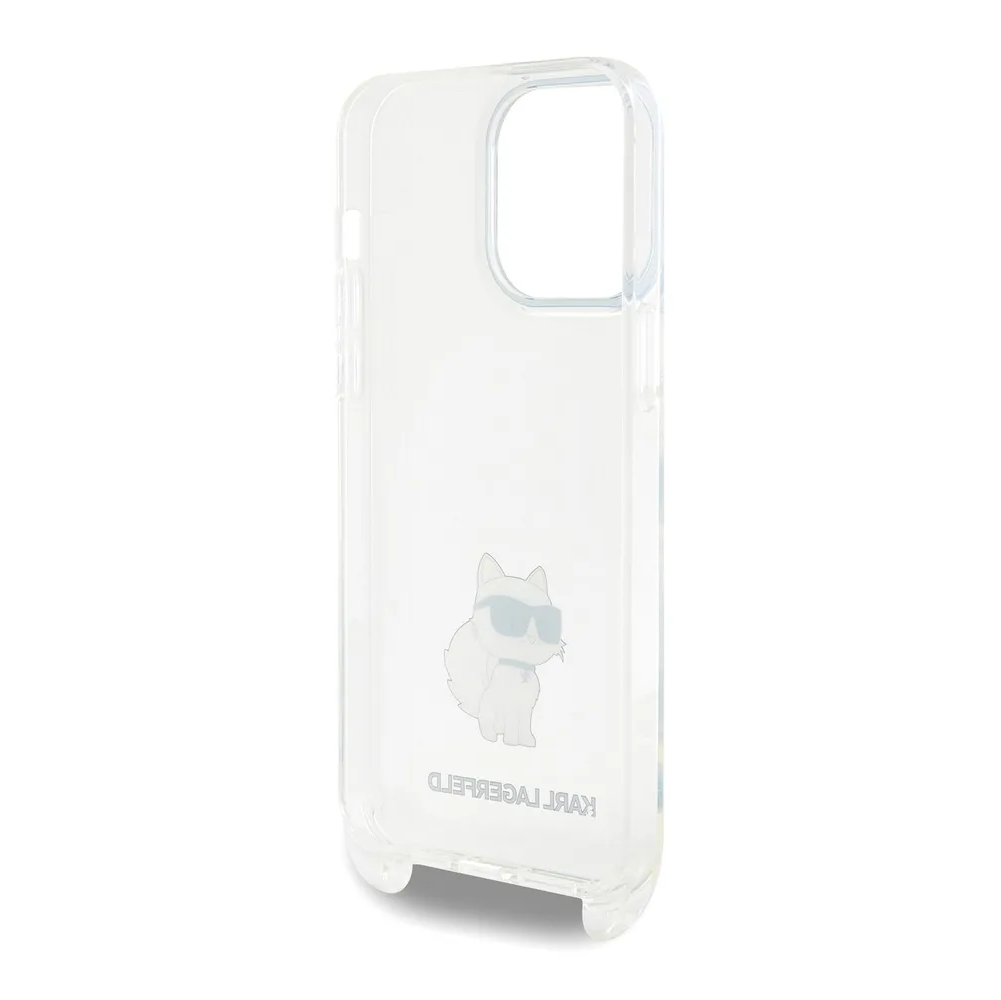 Lagerfeld для iPhone 15 Pro Max чехол Crossbody PC/TPU NFT Choupette + Big Strap Hard Transparent