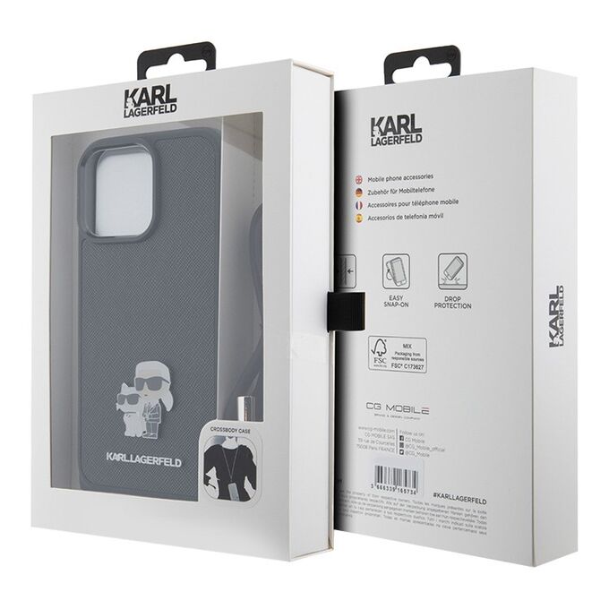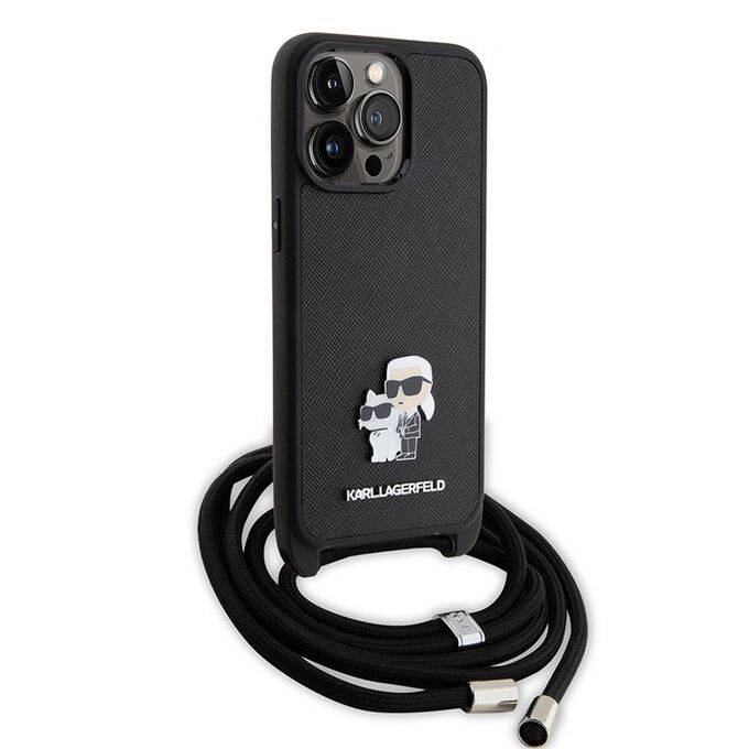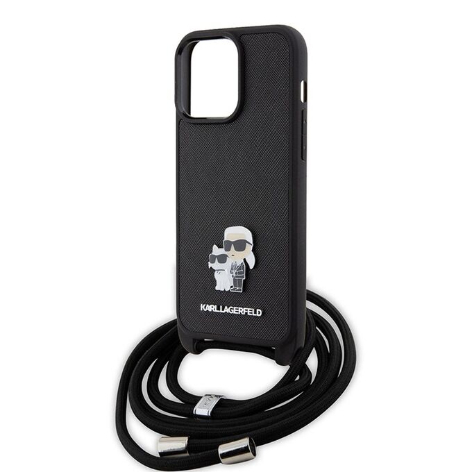 Lagerfeld для iPhone 15 Pro Max чехол Crossbody PU Saffiano NFT Karl&Choup Metal +Strap Hard Black