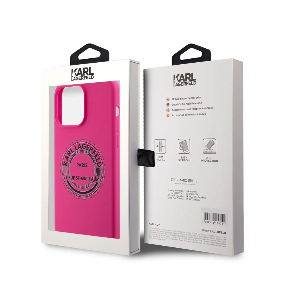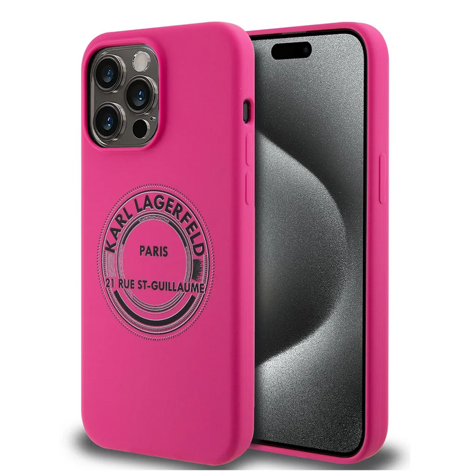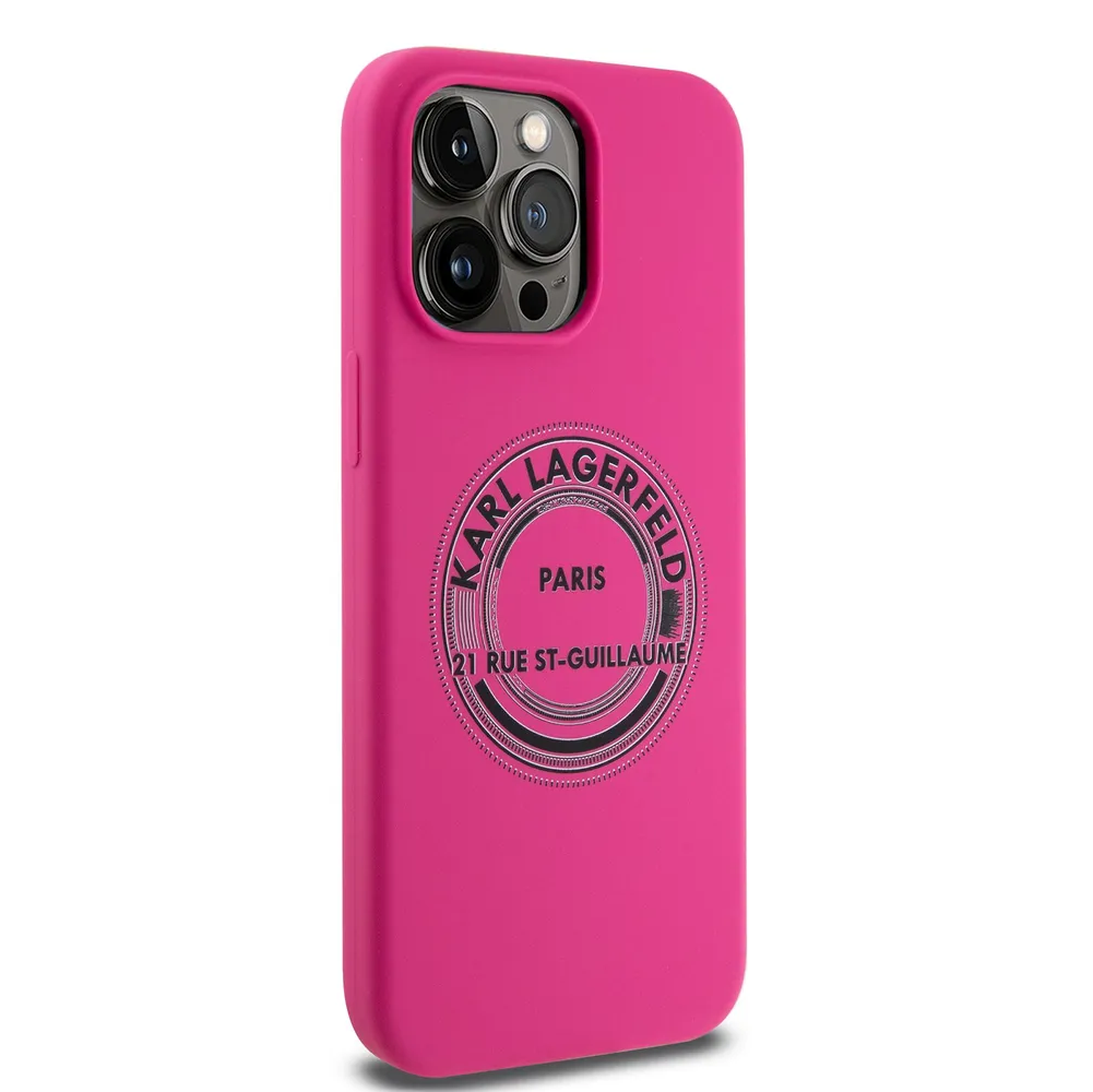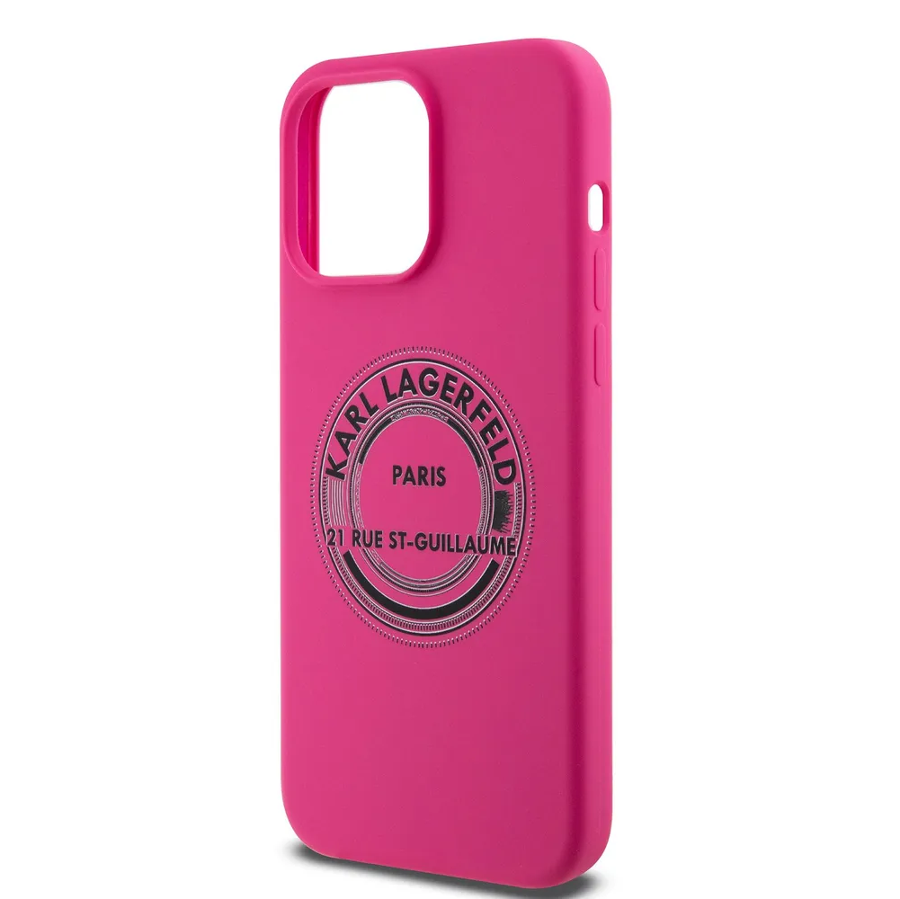 Lagerfeld для iPhone 15 Pro Max чехол Liquid silicone RSG Round logo Hard Fuchsia