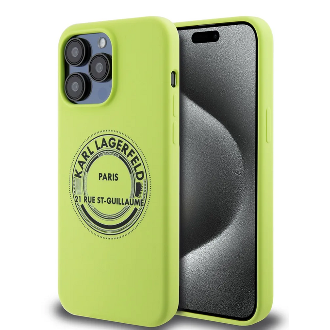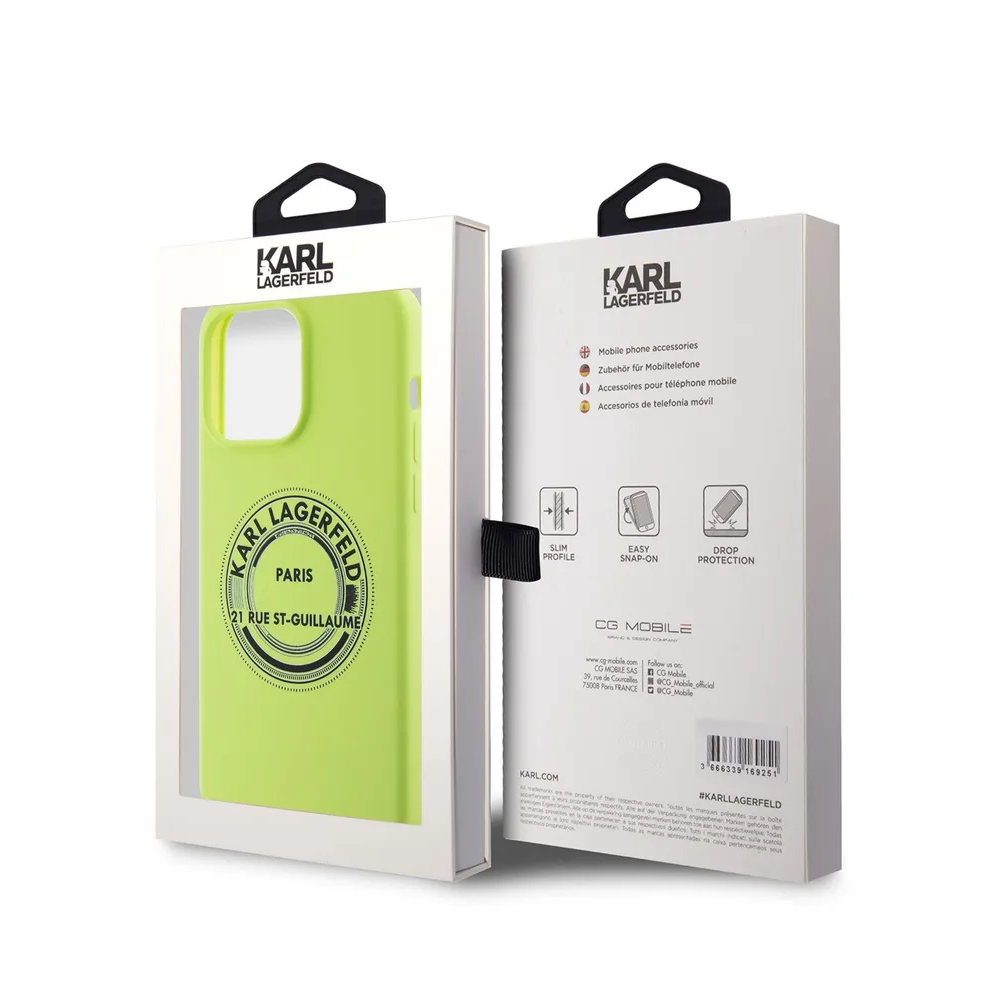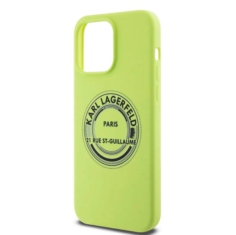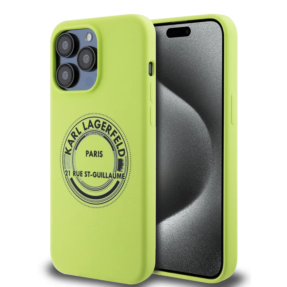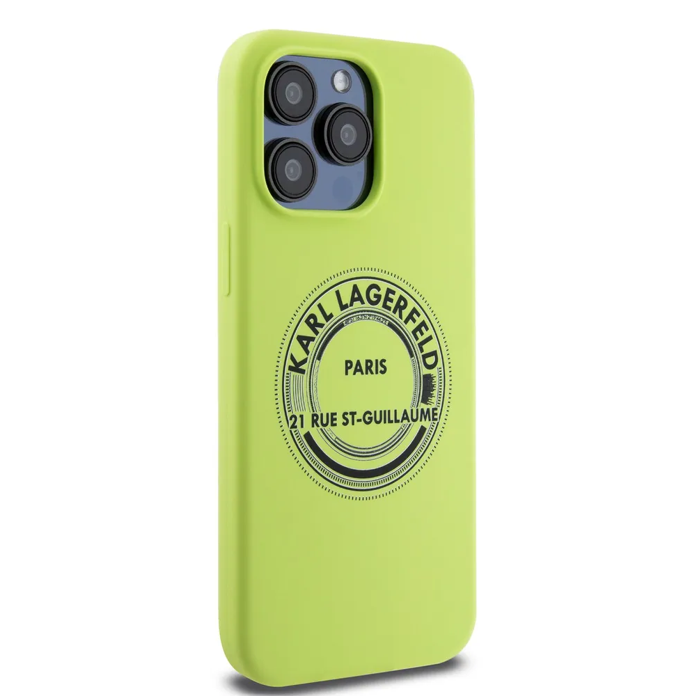 Lagerfeld для iPhone 15 Pro Max чехол Liquid silicone RSG Round logo Hard Green