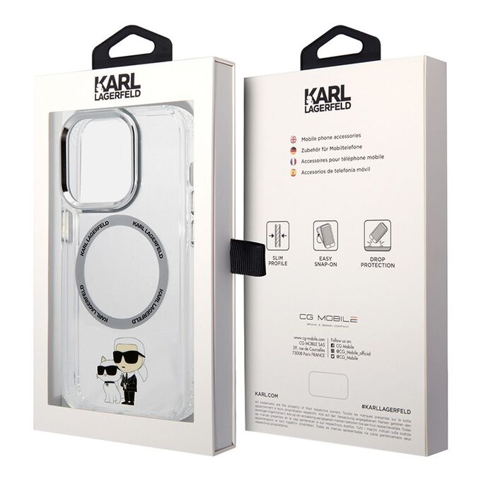 Lagerfeld для iPhone 15 Pro Max чехол PC/TPU NFT Karl & Choupette Metal ring Hard Transp (MagSafe)