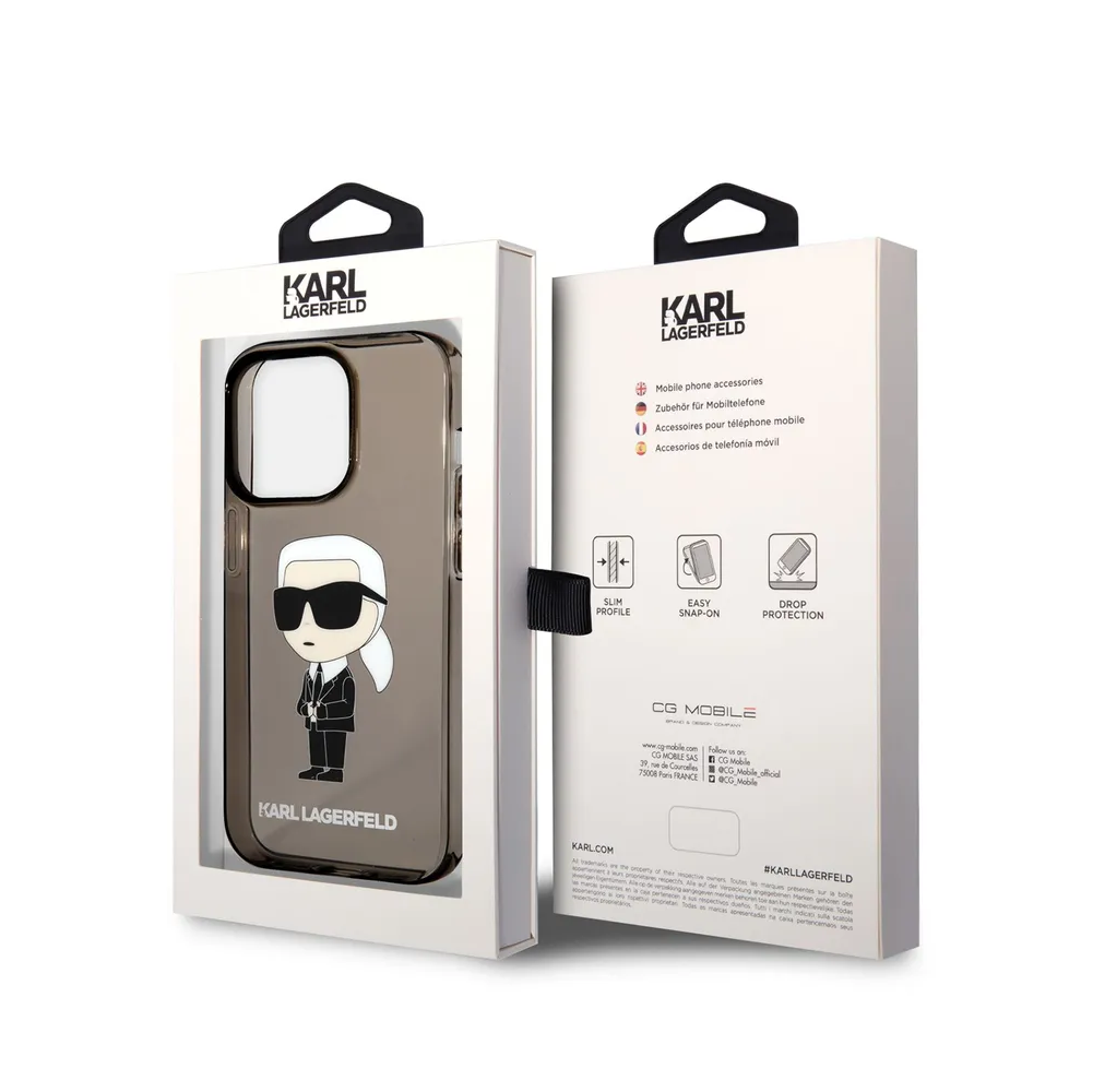Lagerfeld для iPhone 15 Pro Max чехол PC/TPU NFT Karl Ikonik Hard Translucent Black