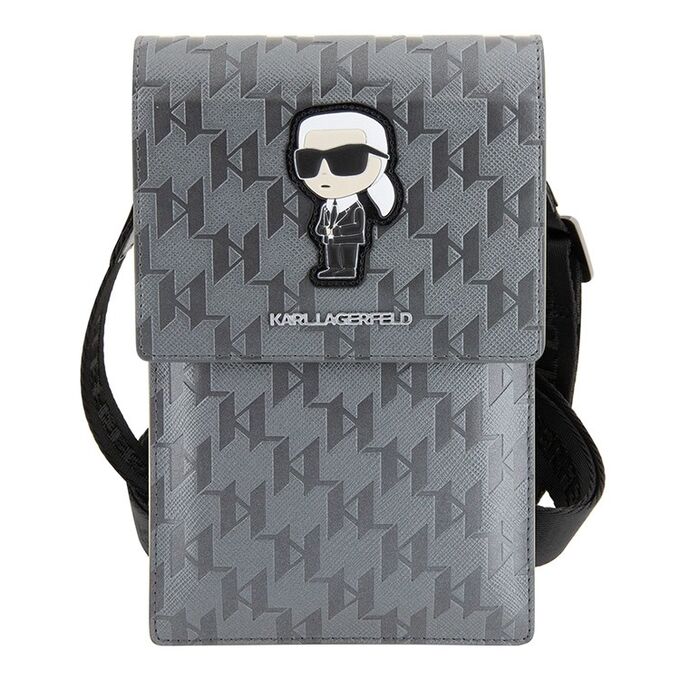 Lagerfeld для смартфонов сумка Wallet Phone Pouch Saffiano Monogram NFT Karl Ikonik Silver