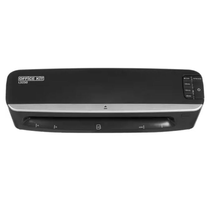 Прибор для ламинирования Office Kit L3250 с потребляемой мощностью 800 Вт и ручным управлением поддерживает работу с документами форматов А3, А4, А5 и А6 толщиной до 0.8 мм. Материалом для ламинирования при этом выступает прозрачная пленка толщиной 60-125 мкм.