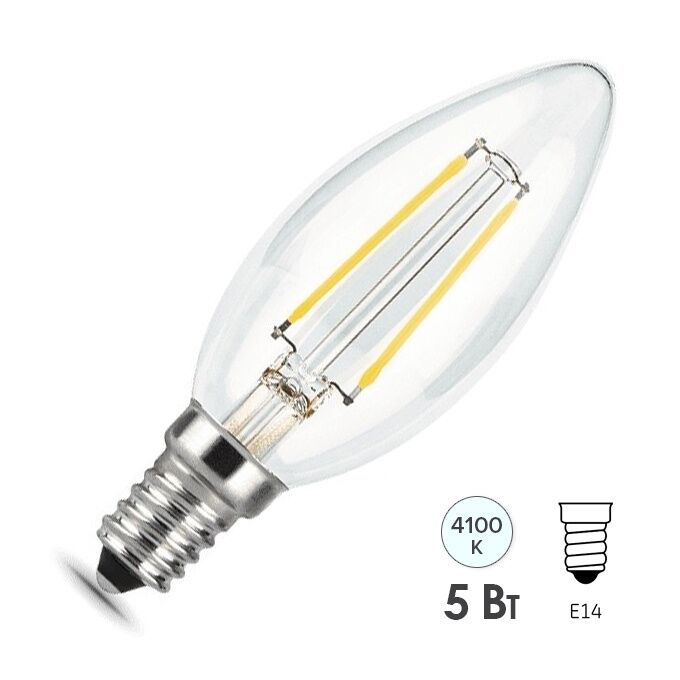 Технические характеристики Gauss LED Filament Свеча dimmable E14 5W 450lm 4100К 103801205-D