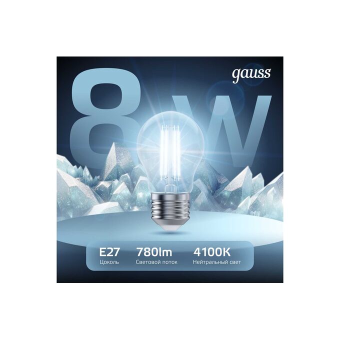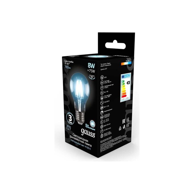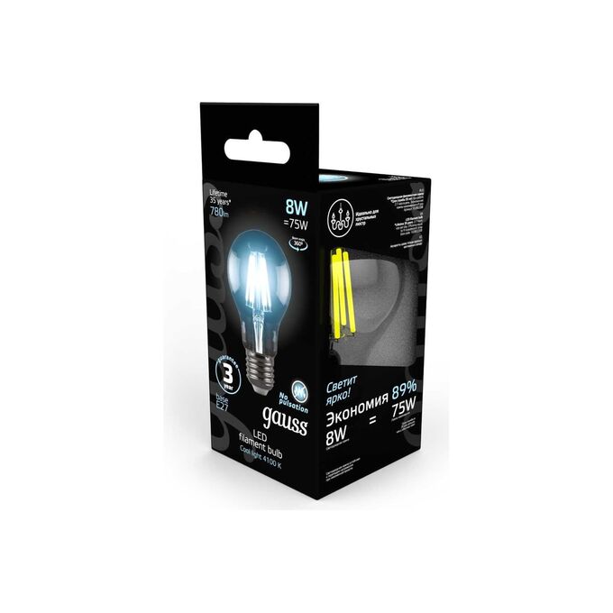 Технические характеристики Gauss LED Filament A60 E27 8W 780lm 4100К 102802208