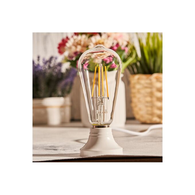 Филаментная лампа REXANT Груша ST64 11.5 Вт 2700K E27 604-139 излучает ровное свечение без бликов и мерцания.